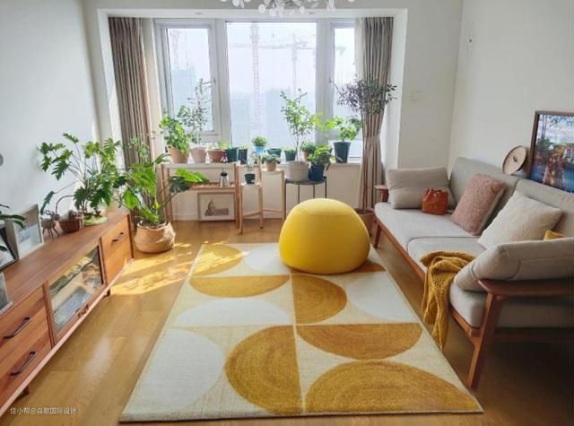 客厅是家里日常的休闲活动空间,对于年轻人来说传统的客厅没有什么优势,毕竟现在大家都是手机电脑,很少有人会看电视。而业主也一直希望客厅可以不仅仅是客厅,于是业主就打造了一个轻松休闲的客厅场景。 没有电视,没有茶几,这样的客厅显得更加宽松轻松,空间小但是没有压抑拥挤的感觉。搭配的懒人沙发和地毯都是鲜艳明亮的黄色,瞬间就把客厅的氛围提升到了一个温暖、热烈的场景上,和绿植的点缀,刚刚好。