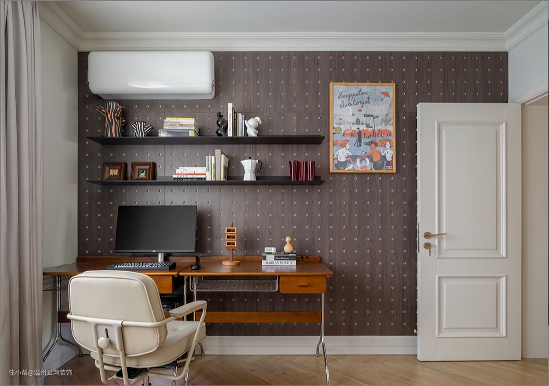 设计师出身的男女主人和正在读小学的儿子,这些身份让书房成为这一家三口的主要活动地。 实用、舒适且功能齐全成为书房设计的核心宗旨。书房的大部分装饰品是上一个家的回忆,是女主人在各地的淘宝,红色沙发来自好友的原创家居品牌pertica。