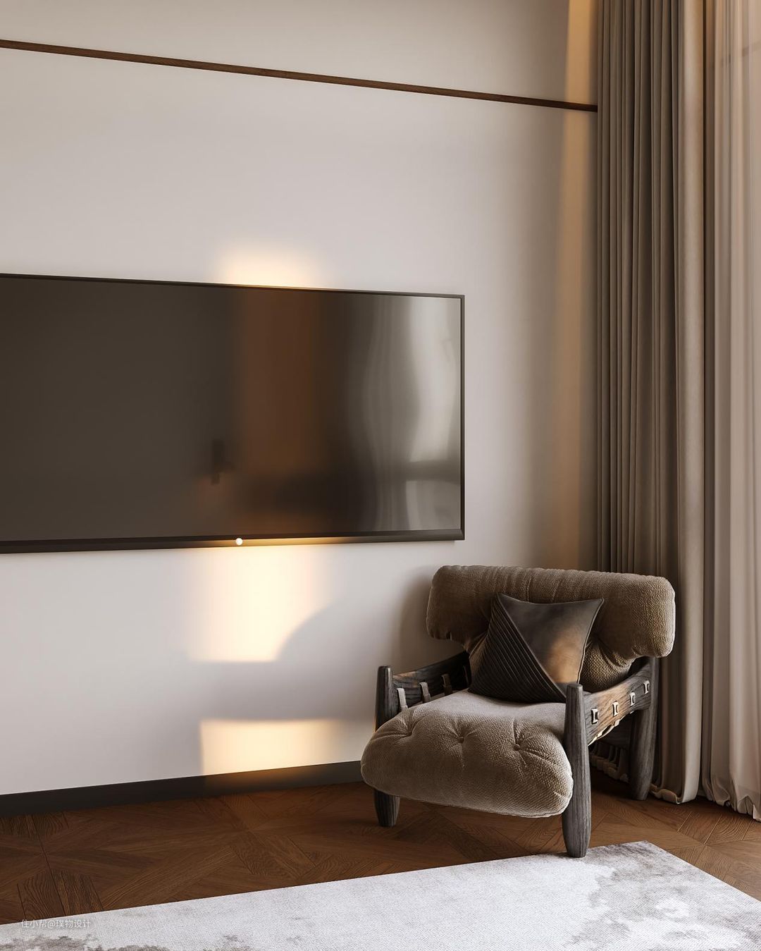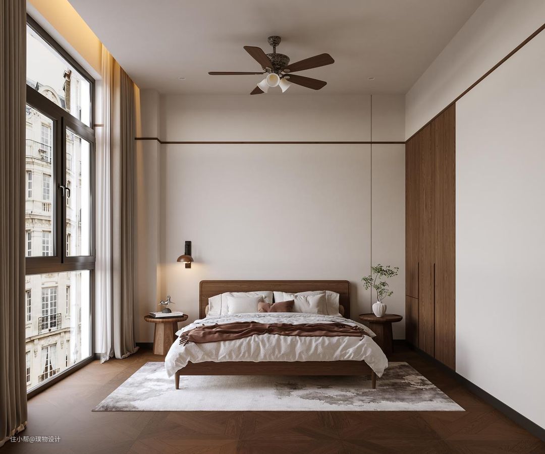 长辈卧简约大气,不需要过多的材质装饰,简单的线条大面的留白即可,控制预算的同时也能很好的出效果。