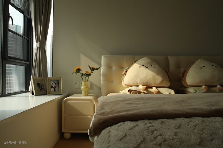 业主是一对即将新婚的小夫妻,对婚房充满幻想!! 女业主说:“想要梦幻的童话世界,色彩温和,氛围感强” 男业主说:“想要兼顾实用且耐看的家” ——于是就有了属于他们自己的梦幻家,这也许是独一无二的“家的摸样”