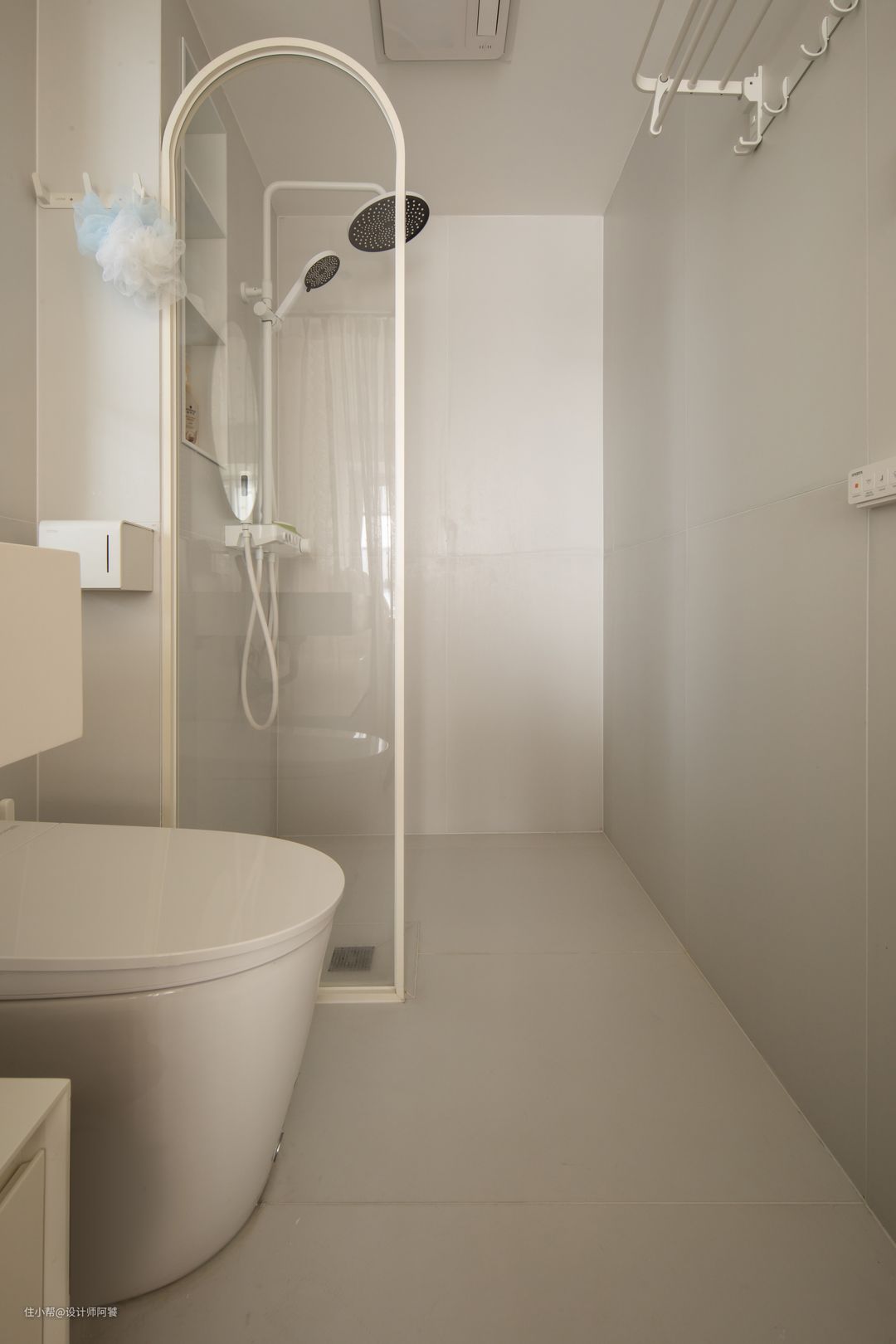 卫生间设计三分离,干净而极又纯粹 干区墙面设计“草绿”色点缀,与客厅相呼应 墙地面瓷砖选用奶油色柔光砖,让空间提升层次和温暖🤎 在卫生间留出了比较舒服的淋浴和马桶位置后,将浴室柜台面尽可能做大