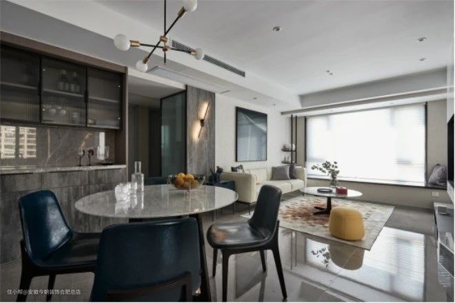 餐椅皮革是现代简约风格常用的软装材料之一,可以增加空间的高档感和舒适感。