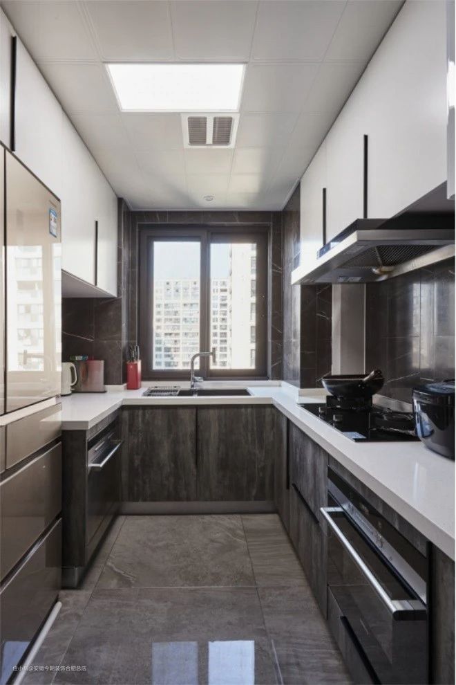 白色大理石的台面,搭配深棕色橱柜让做法充满仪式感。