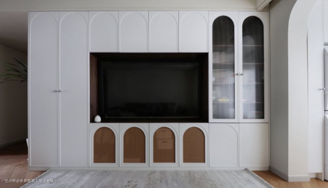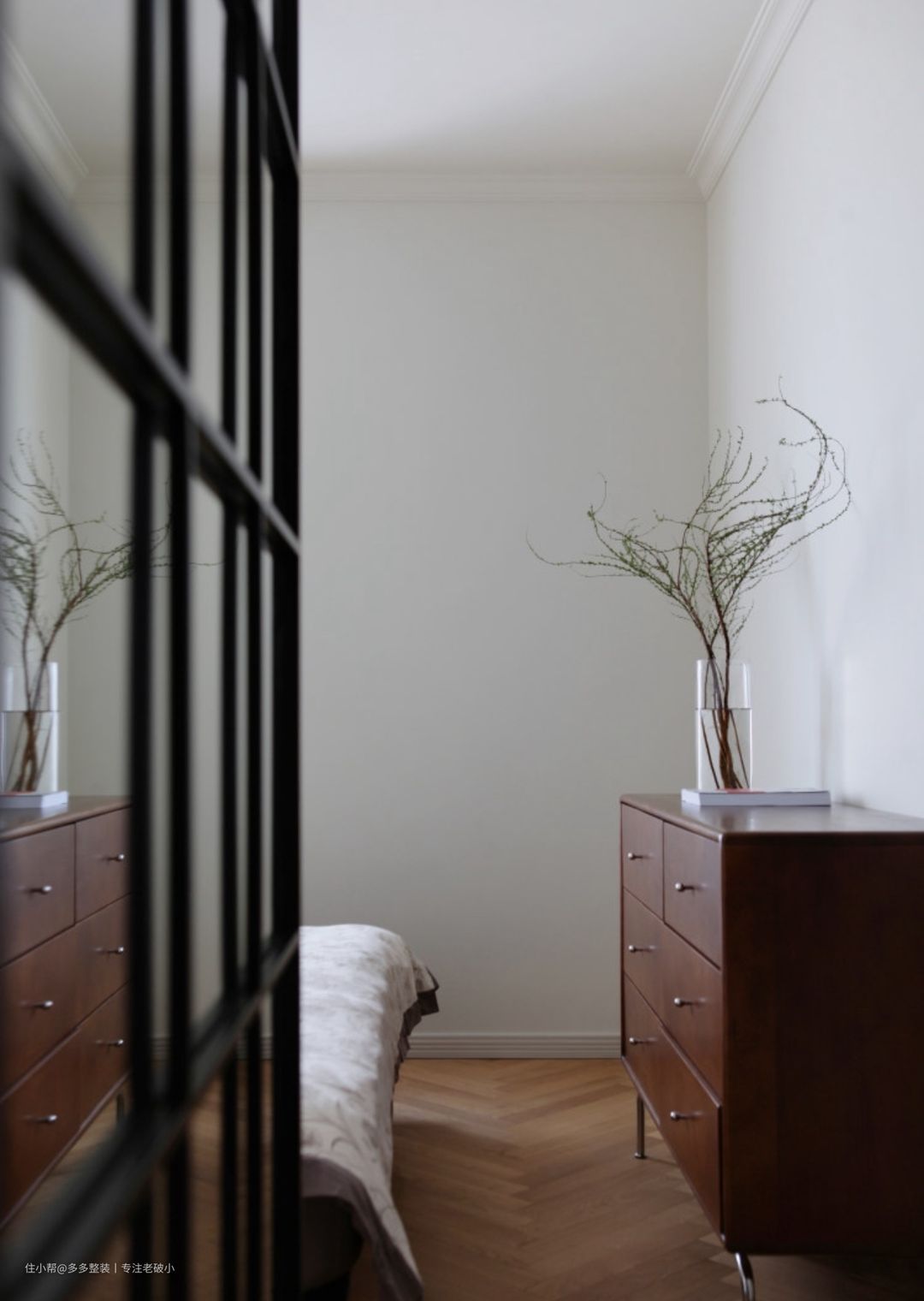 清晨的日光透过白纱帘柔软的铺满房间的每一处角落,煮一杯咖啡,看一则杂志,电影里的情节都在这个家中上演着。轻法式是恰到好处的细节和浪漫,复古更是经得起时间审美考验的美丽和经典。 没有复杂的装饰背景,只是用一些精致的线条勾勒刻画出优雅的氛围,拱形门洞的设计巧妙的给了客厅与阳台一个柔软的过度与连接。心中理想的完美法式大概就是这样,简化的生活方式,低饱和度的色调,局部的线条和色彩点缀,自然平静又优雅高级。