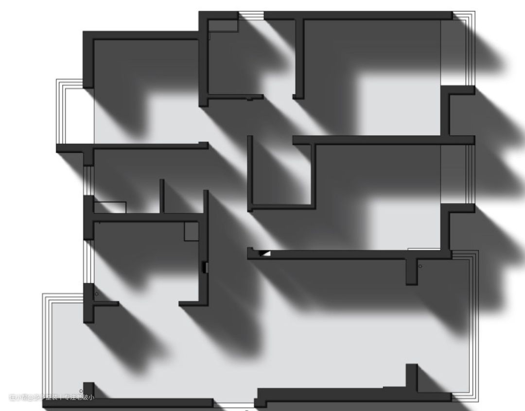 改造前: 没有太大毛病的三居室,但有几个点在实际生活中会有一些困扰。 1. 独立的厨房和餐厅看似没有什么硬伤,但厨房可做台面的空间剪掉灶台和水池后所剩无几,如果经常在家做饭,这一点空间用不了多久就会堆满东西。 2. 儿童房的长走廊很尴尬,没有办法合理利用只能单纯浪费空间。