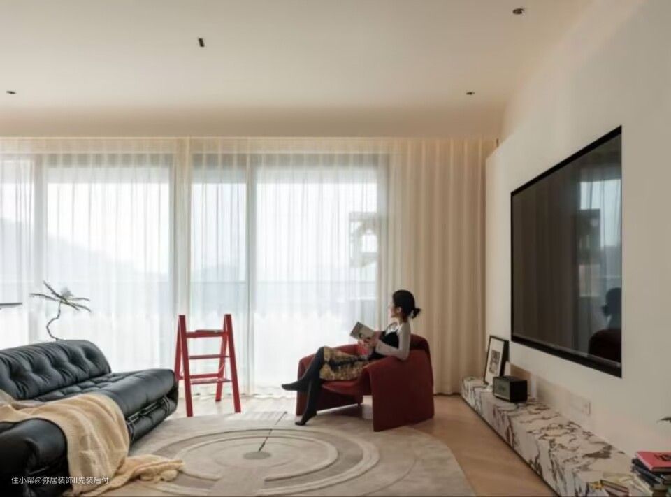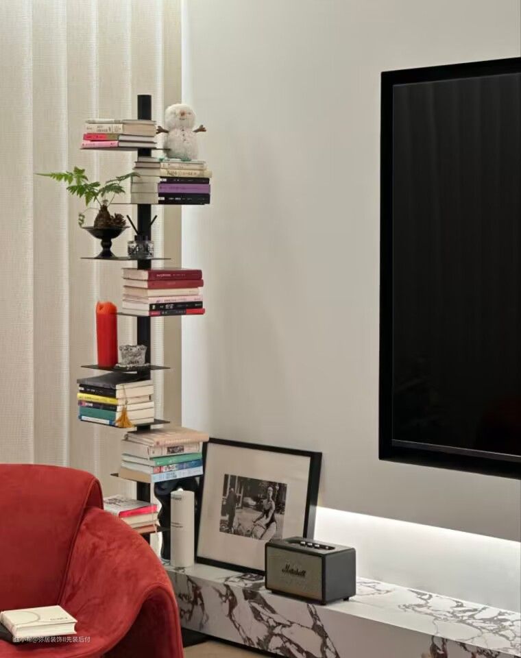 在全屋体量最大的家居之一沙发的选择上, 作为包豪斯爱好者,怎么能舍弃钢牙大沙发? 为了突出个人色彩,始终坚持红黑配。 黑色主沙发搭配红色单人沙发,把“时髦!时髦!时髦!”发挥到骨子里。 朋友说:浅色的搭配是安全牌,可看到红黑配的沙发就知道这是你家!