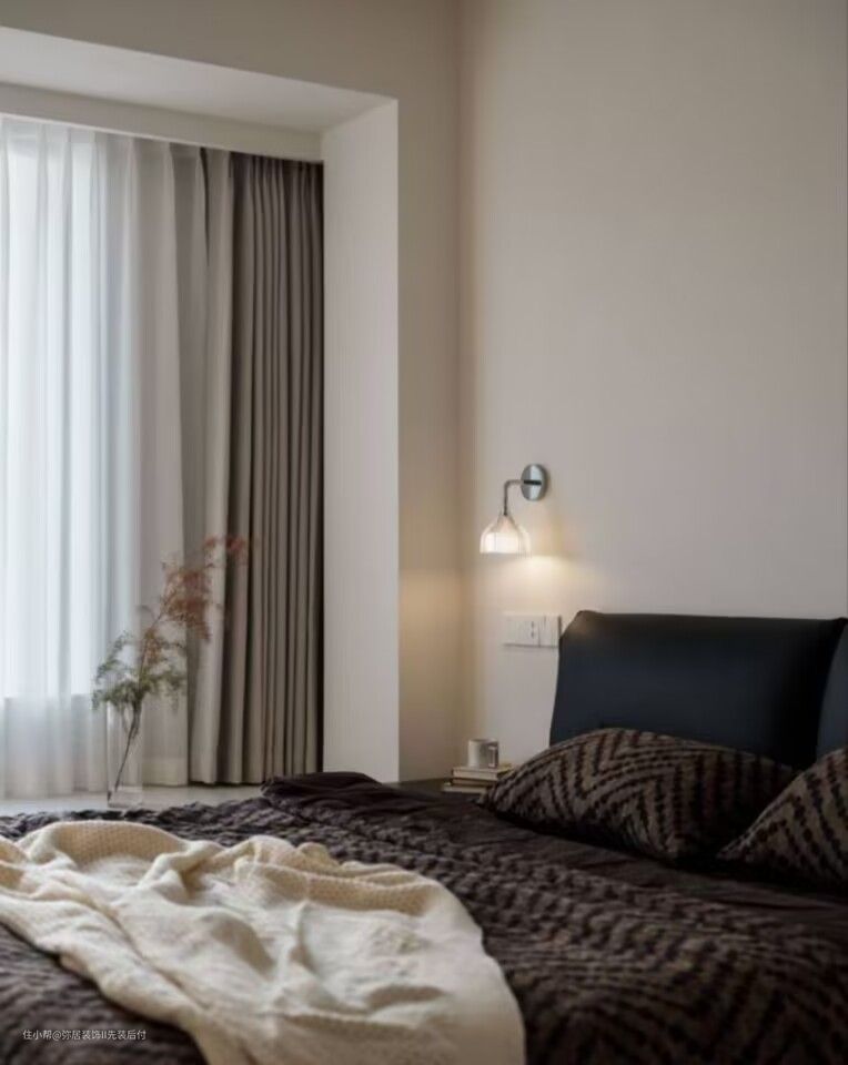 给爸爸妈妈留的次卧,平时利用率不高,所以布置的比较简单。黑色的小象耳朵床搭配浅白色的窗帘,充分体现父母房的稳重感。当然安排上了美拉德色系波点四件套,被朋友们夸真时髦儿。
