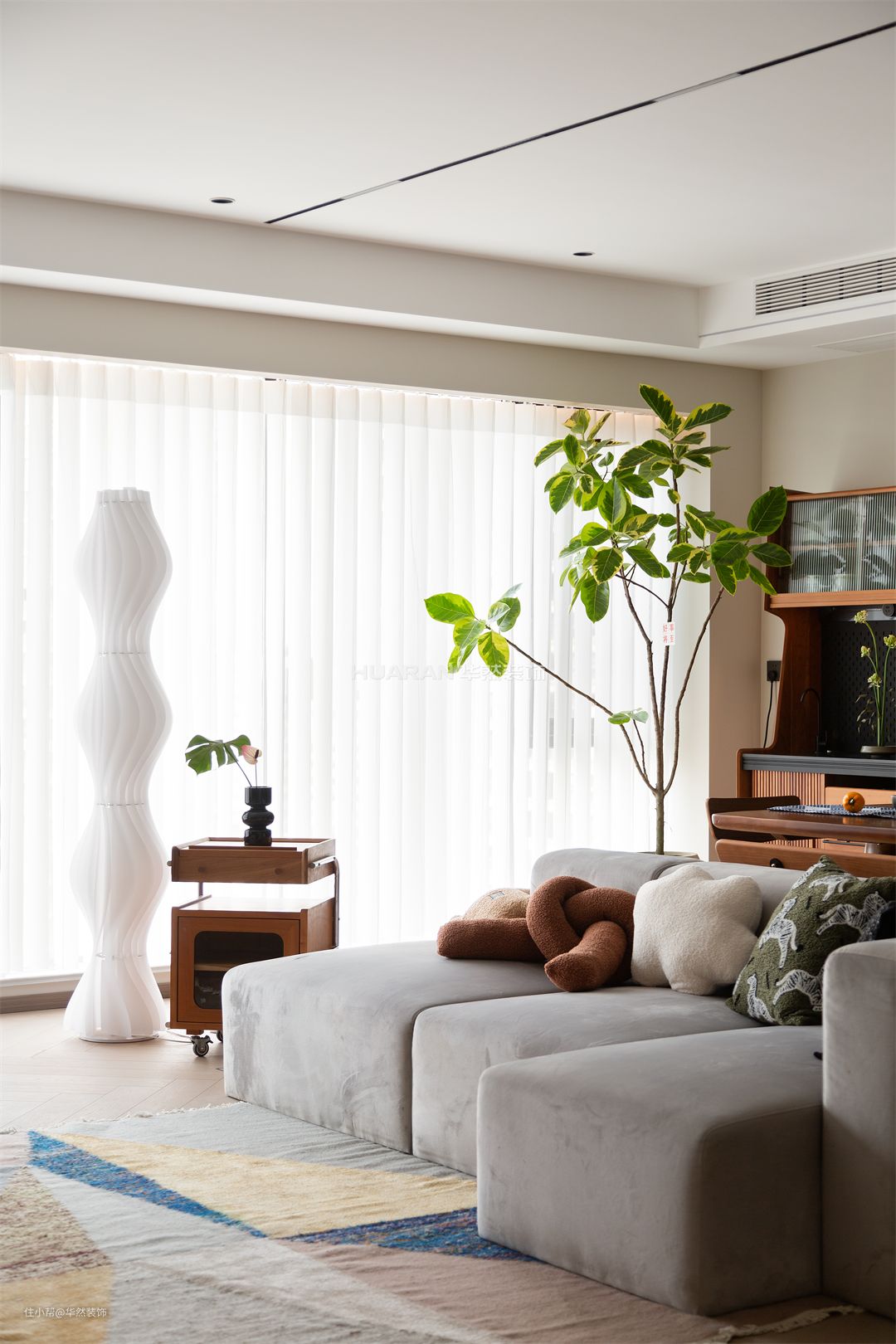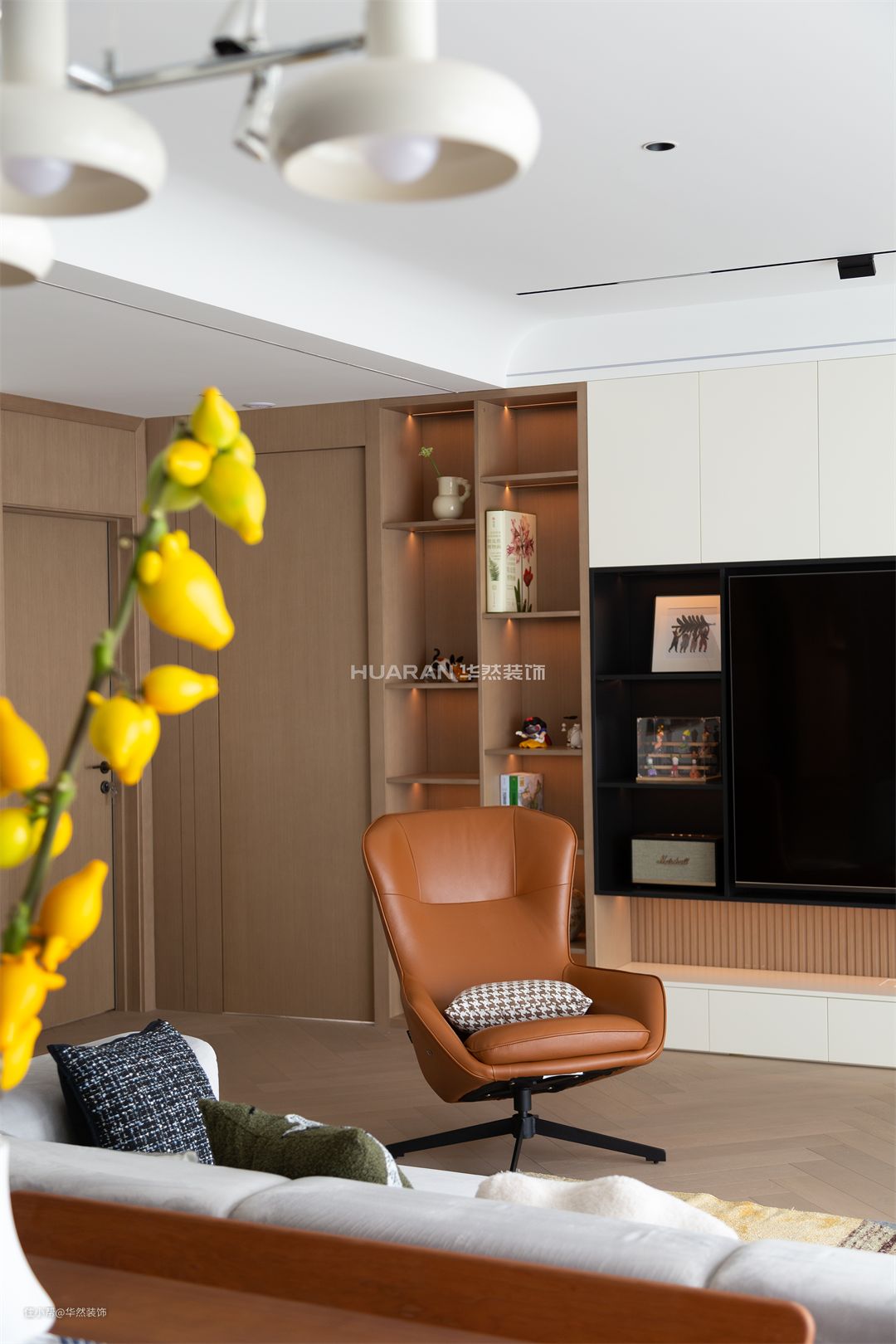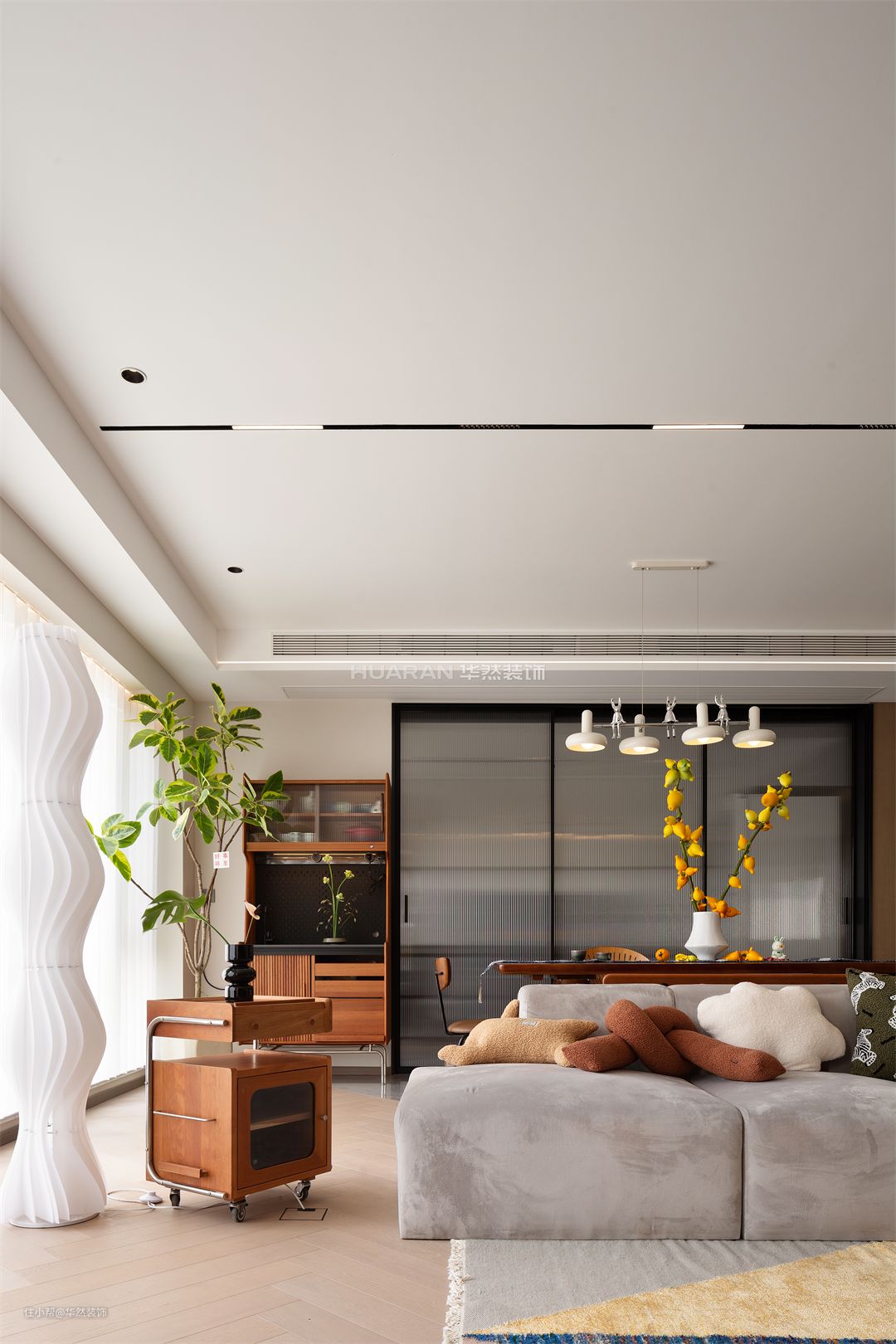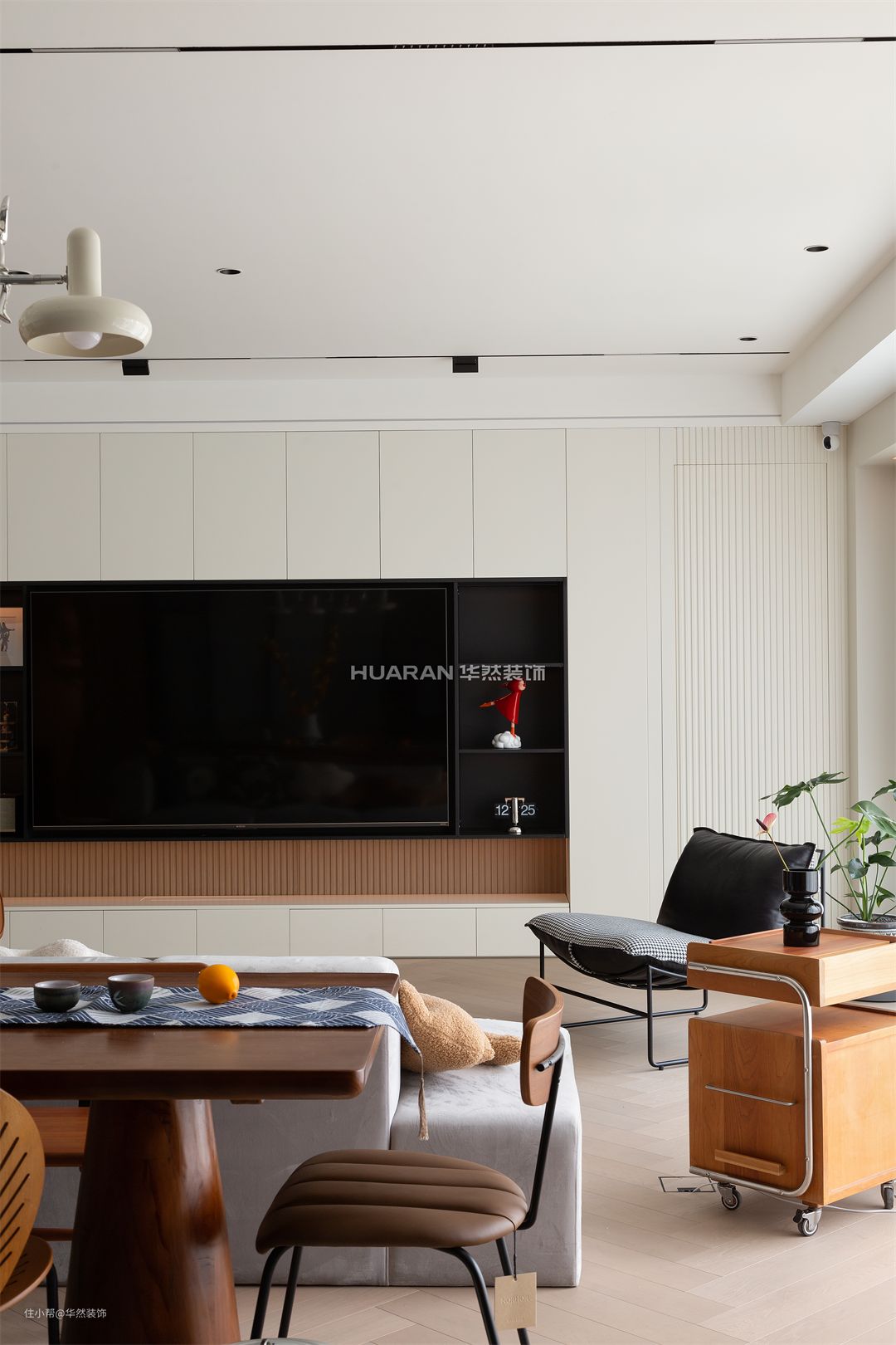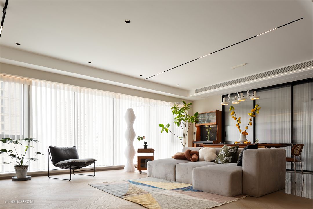 当原木遇上纯白,无需过多修饰 随遇而安的简约气质,瞬间袭来 内敛的白,低调地诉说着空间的温柔 一抹清新淡雅的绿意,尽显雅致 将悠然美感悄然搬进室内 在不经意间流露客厅的舒适与温柔