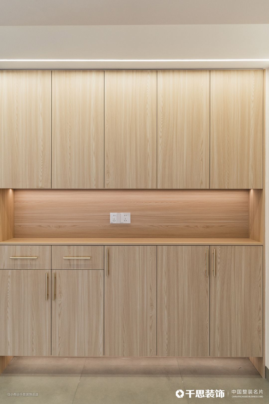原木风格的玄关柜内嵌氛围灯带,清爽感扑面而来;底部留出20公分用来换鞋,中部预留插座也更方便。
