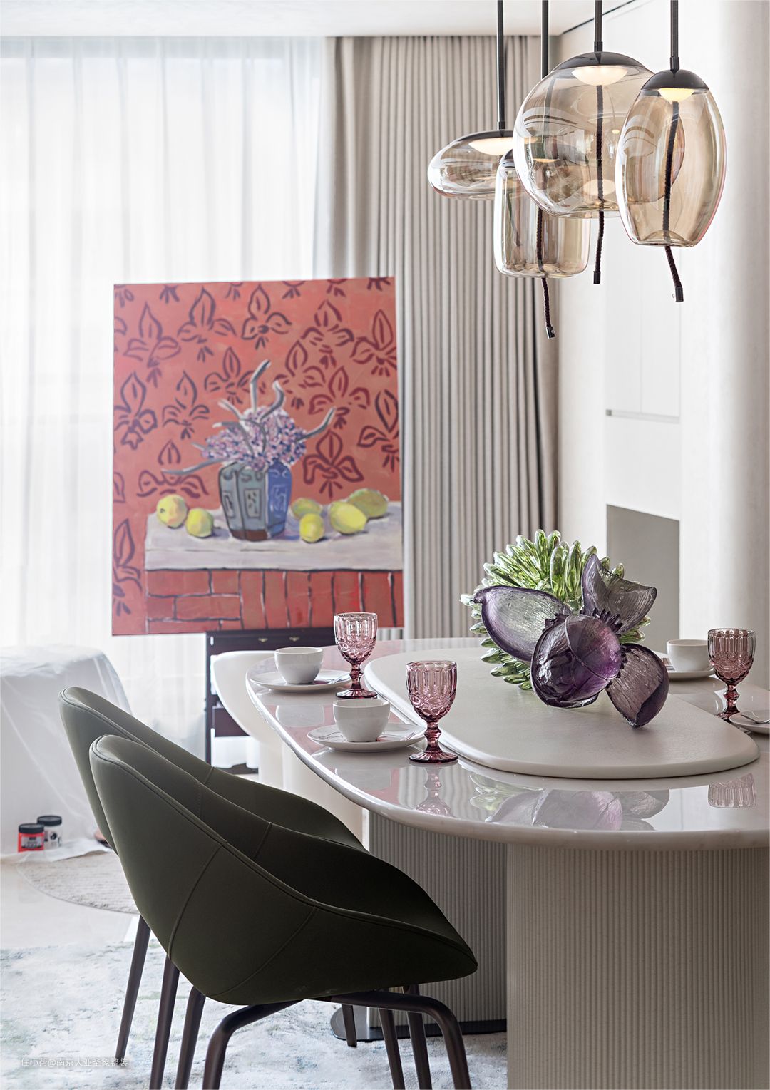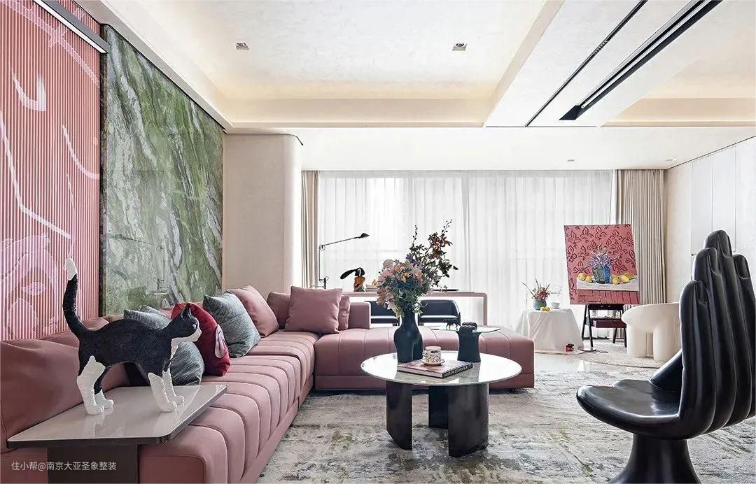 整体色调以粉色+白色+绿色为主 软装搭配同色系 大面积落地窗 阳光透过薄纱 这法式浪漫的氛围感不就呼之欲出啦 多巴胺的色系看着心情就好 真的是人见人夸
