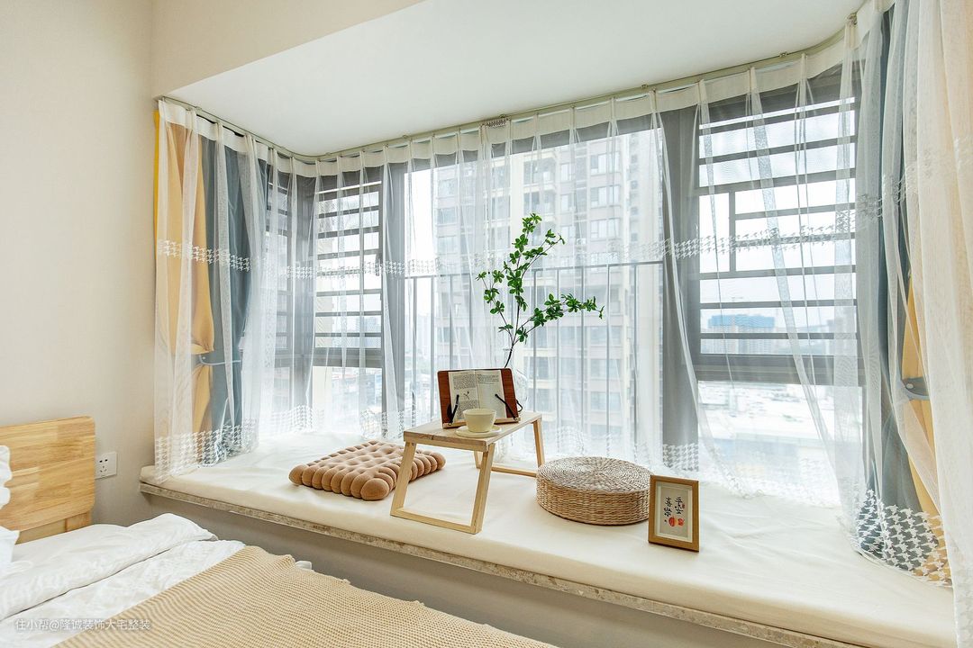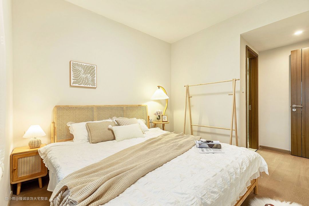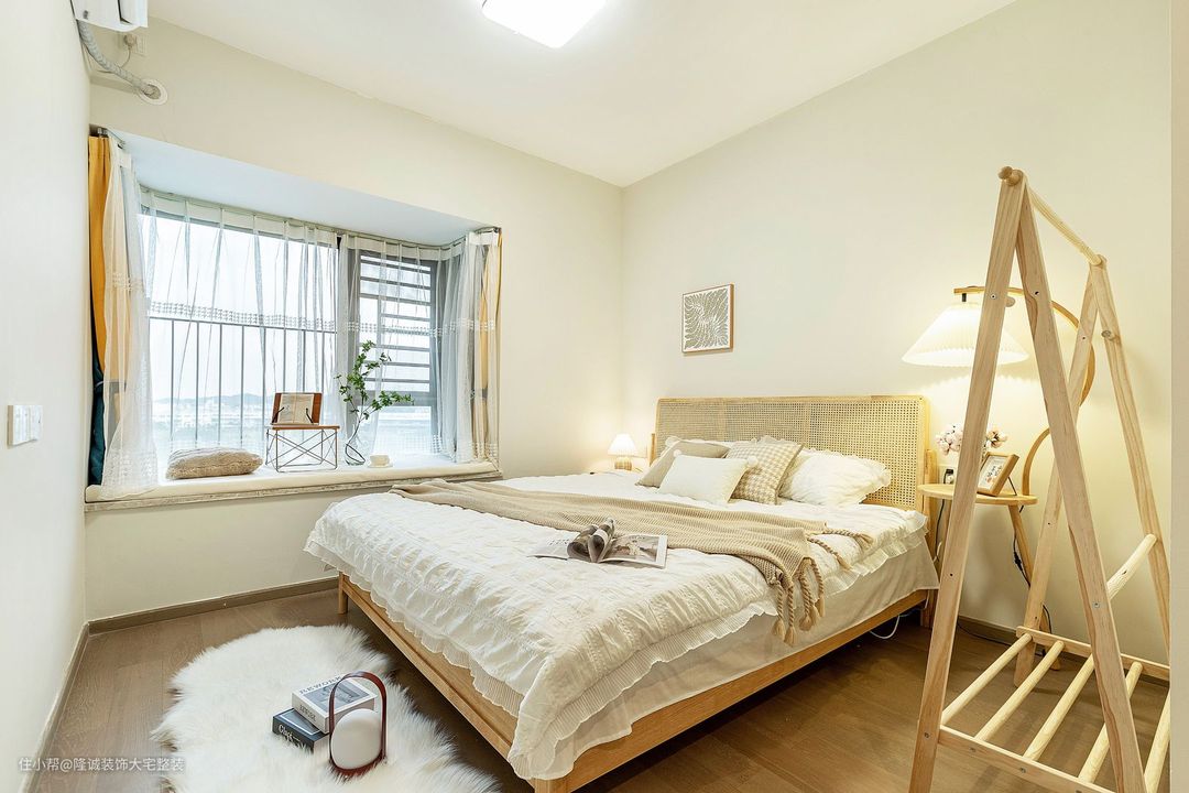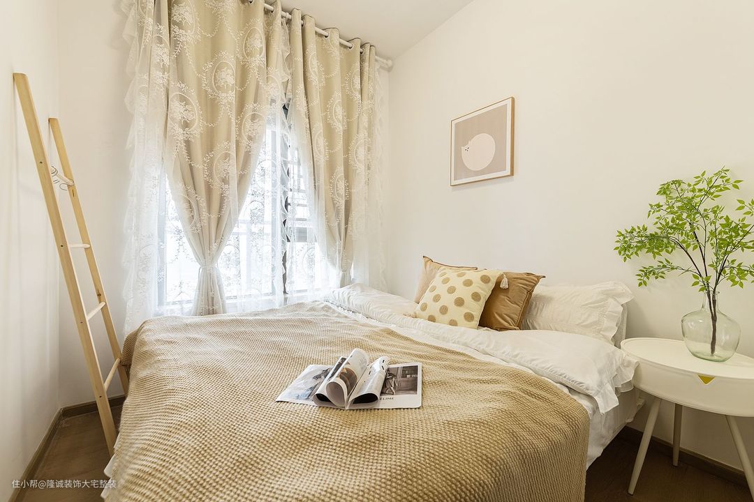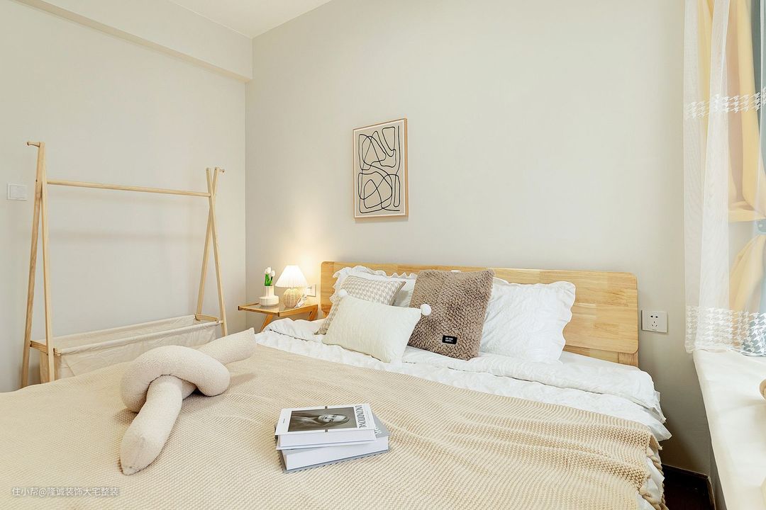 卧室的设计同样以奶油色为主调,搭配法式风格的床头背景墙和窗帘,营造出浪漫优雅的睡眠环境。同时,简约的家具和装饰也保证了空间的舒适性和实用性。