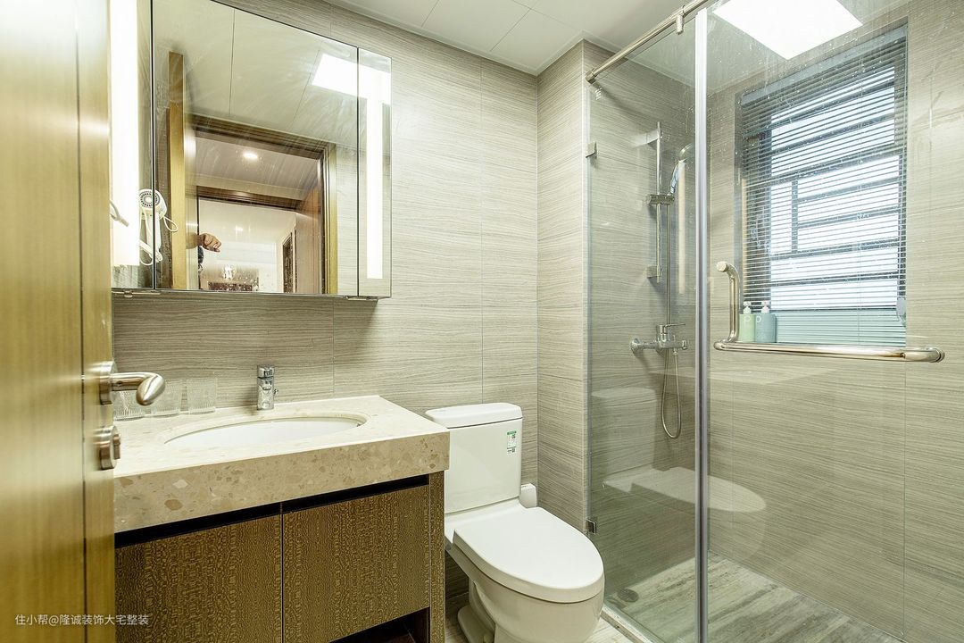 卫生间采用了干湿分离的设计,选用白色和奶油色的洁具和瓷砖,使整个空间显得干净整洁。同时,法式的装饰细节也体现在洗手台和镜子的设计上,提升了空间的品质感。