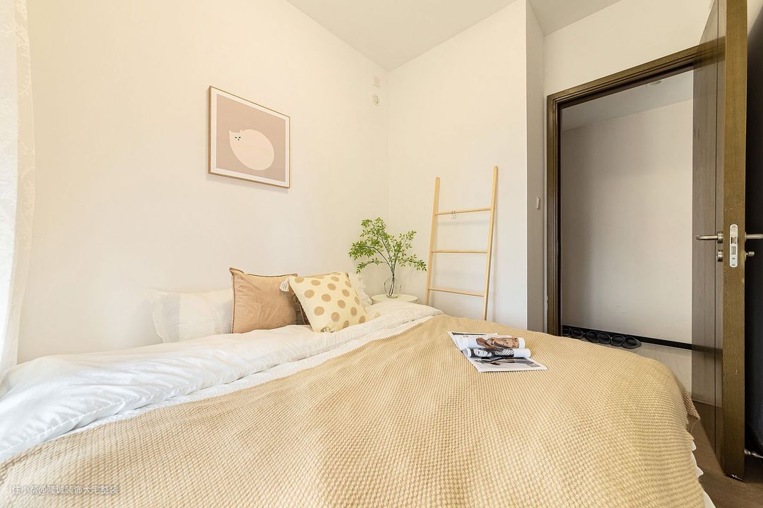 在这个次卧室设计中,木地板和奶油色墙面的组合为整个空间营造了一种温暖而舒适的氛围。为了进一步增强这种温馨感,选择一张奶油色的皮艺床是非常明智的决策。奶油色皮艺床不仅与墙面颜色相协调,还为卧室增添了一种柔和而高雅的质感。
