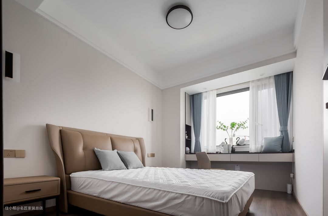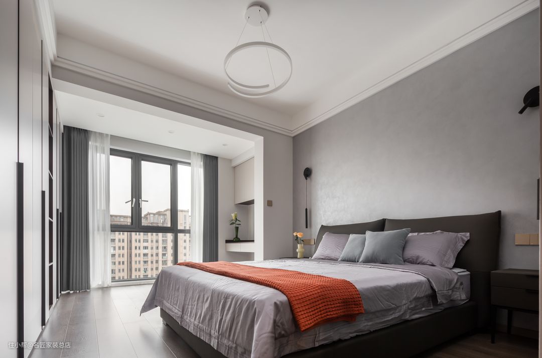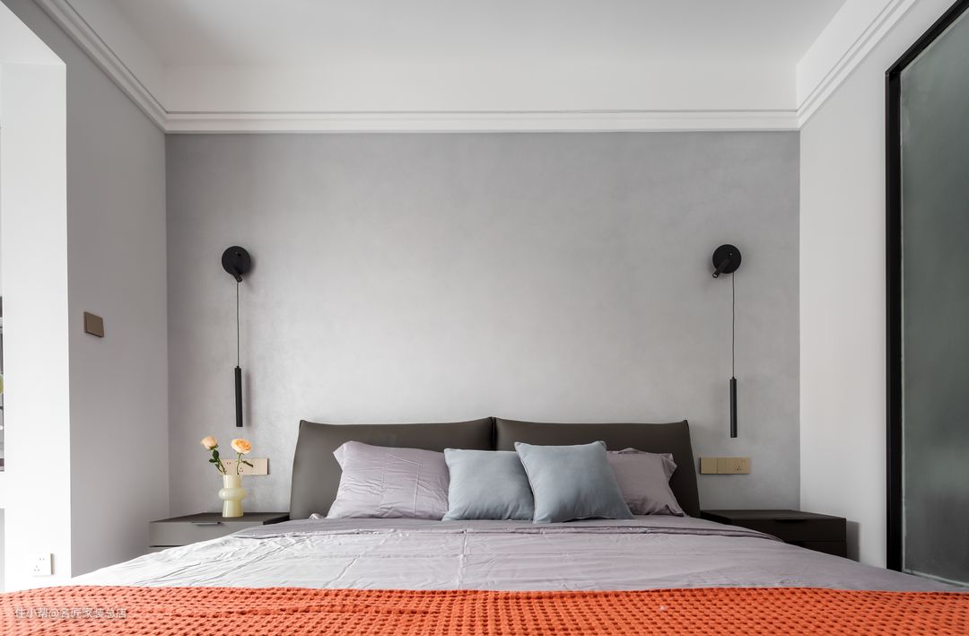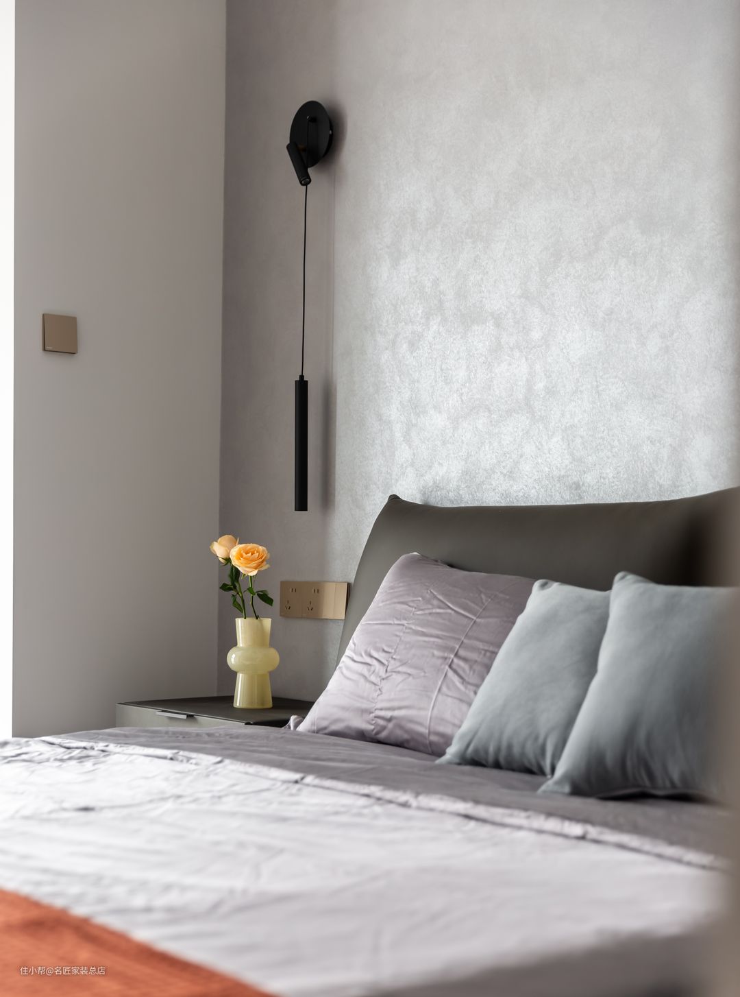 卧室是休息的地方,现代简约的设计让这里充满了温馨和舒适。白色的墙壁,搭配灰色的床,给人一种安静的感觉。在这个空间里,你可以放下疲惫,拥抱美好的梦境。
