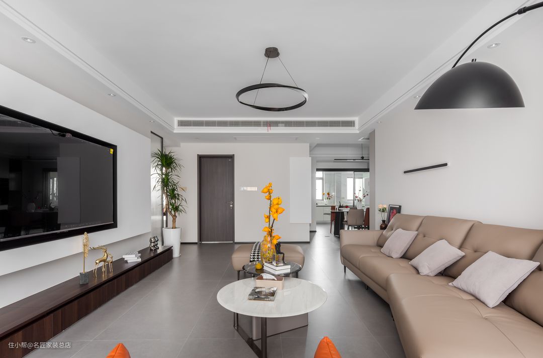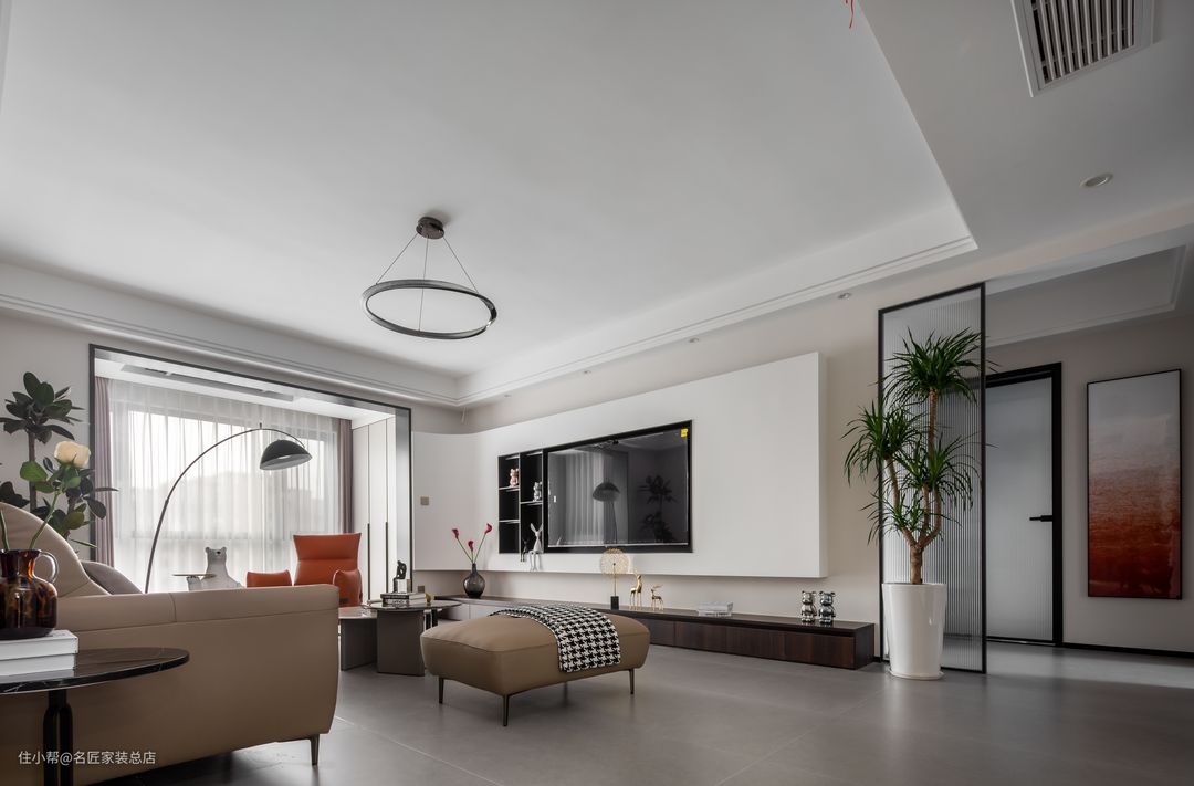 走进这个现代简约的客厅,你会发现这里是一个极简主义的天堂。白色的墙壁,搭配灰色和米色的沙发,给人一种宁静致远的感觉。地毯上的几何图案,为整个空间增添了一丝活力。此时,一杯咖啡,一本好书,便是这个午后最美好的时光。