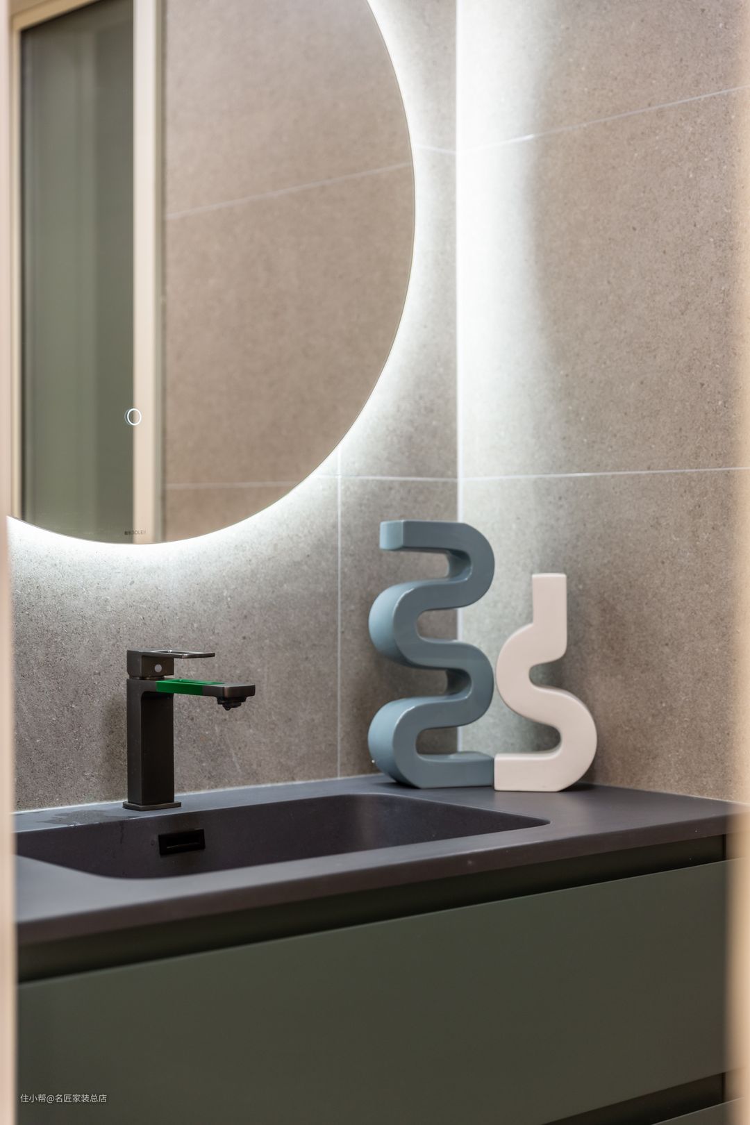 洗漱间的设计简约而大气,白色的瓷砖墙面,搭配原木色的洗手盆和镜子,给人一种整洁的感觉。洗漱间里的装饰品和绿植,让洗漱间充满了生活的气息。