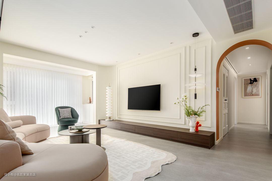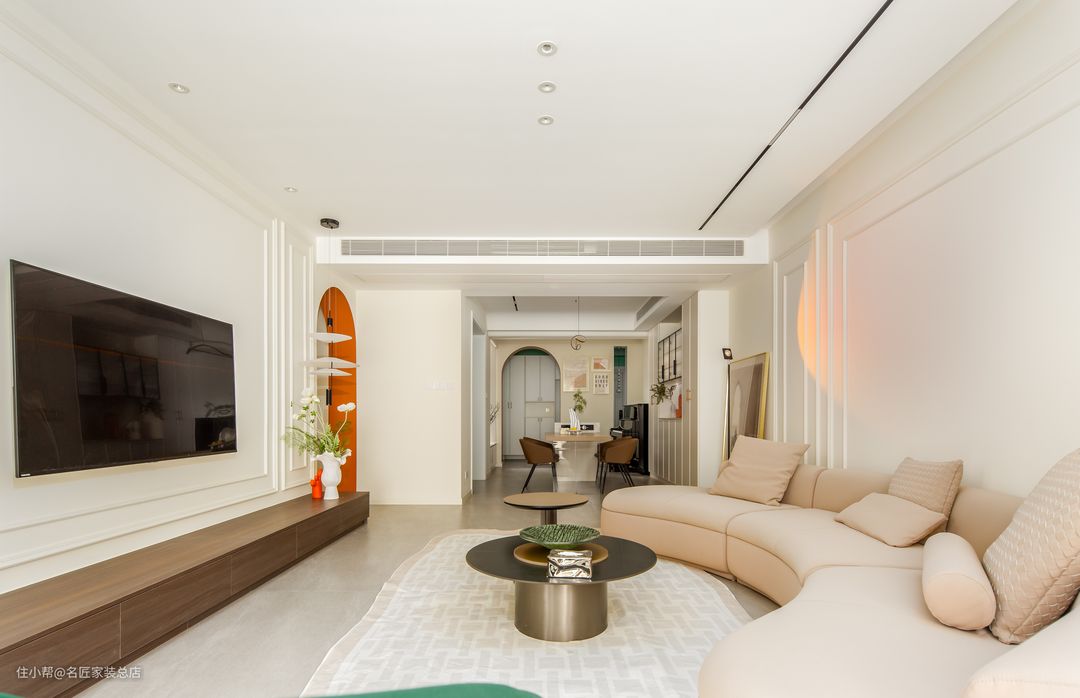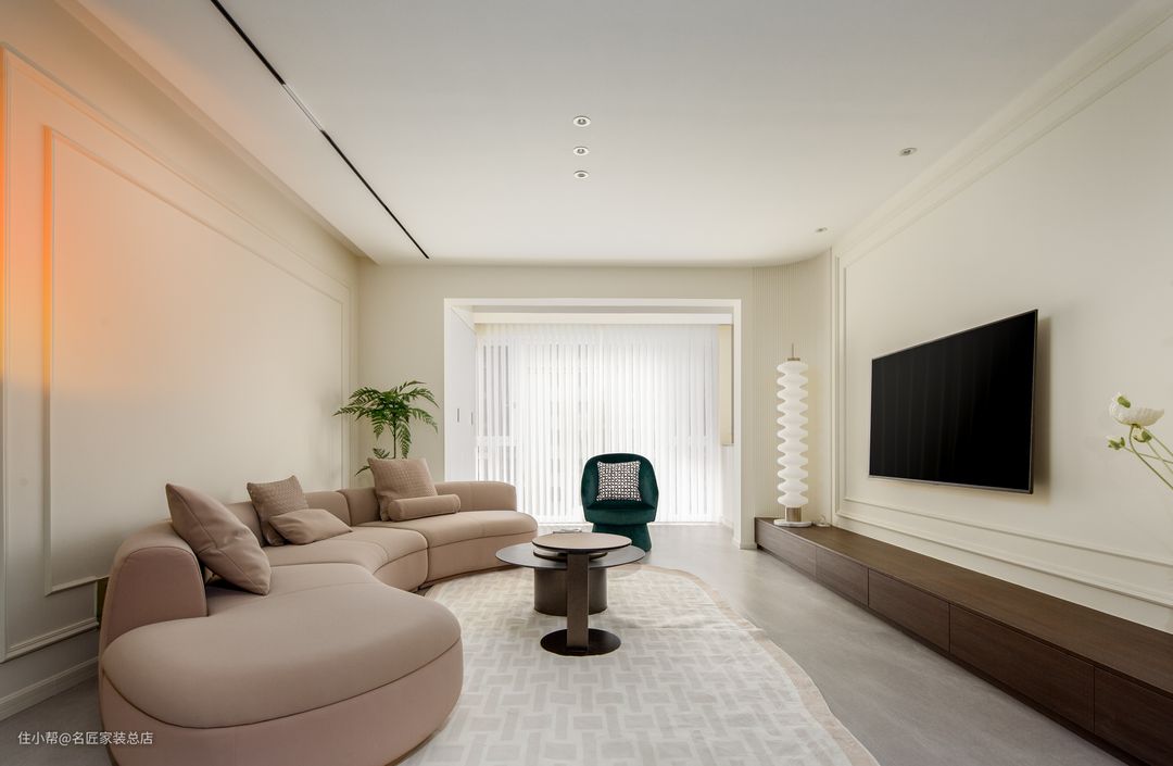 家的意义是能给我们一个温柔又踏实的归属,我们总是为了太多遥不可及的事件奔波劳碌却忘了人生真正的幸福,推开家门,首先映入眼帘的是温馨的客厅。客厅的墙面米色乳胶漆,搭配原木质感的电视柜和茶几,给人一种温暖的感觉。柔软的沙发上摆放着几个色彩斑斓的抱枕,为空间增添了一丝活力。阳光透过白色的窗帘洒板上,营造出舒适的氛围。