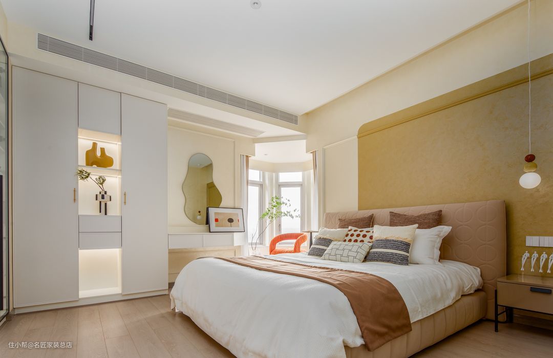 卧室是 Ins 风暖色家装中最具温馨感的地方。柔软的床品,温暖的灯光,以及舒适的窗帘,营造出一种宁静、舒适的睡眠环境。在这里,你可以放下疲惫,进入美好的梦乡。墙壁上的挂画,以及简约的床头柜,展现出主人生活品质的追求。