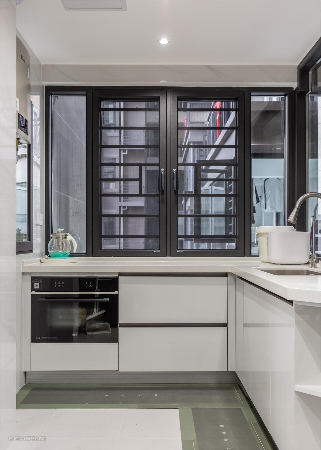 U型厨房设计,让烹饪变得更加轻松愉快。白色瓷砖搭配原木橱柜,呈现出一种简约、大气的美感。在这里,你可以尽情地发挥创意,家人烹饪美食。暖色调的灯光,让你在厨房里感受到家的温馨。