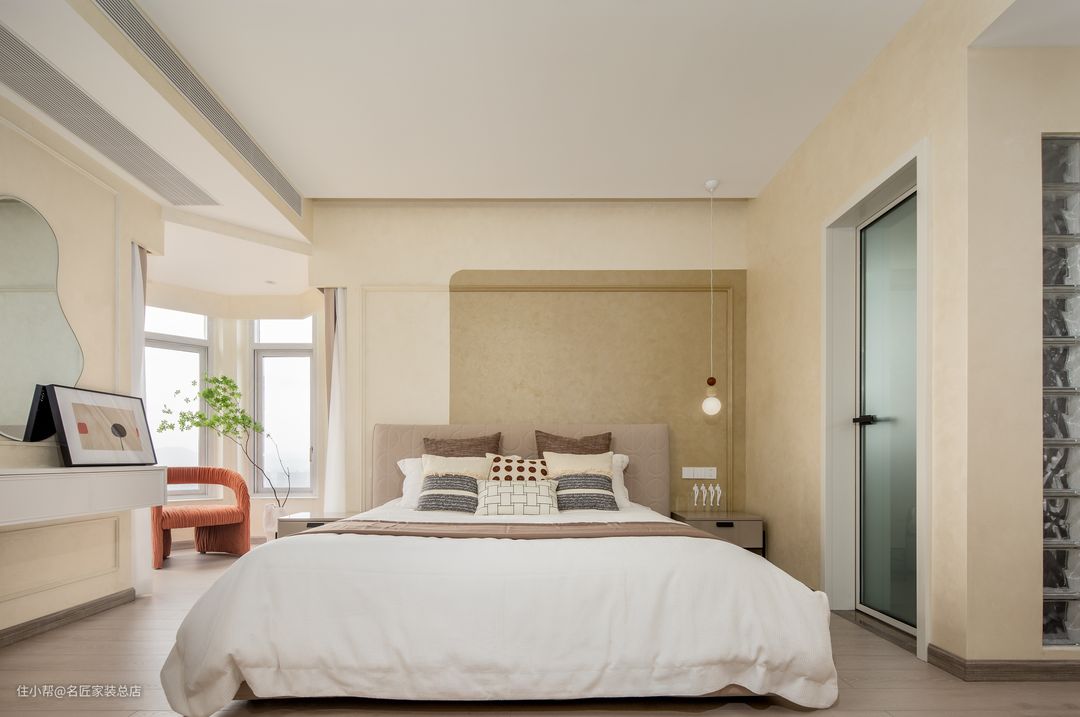 卧室是 Ins 风暖色家装中最具温馨感的地方。柔软的床品,温暖的灯光,以及舒适的窗帘,营造出一种宁静、舒适的睡眠环境。在这里,你可以放下疲惫,进入美好的梦乡。墙壁上的挂画,以及简约的床头柜,展现出主人生活品质的追求。