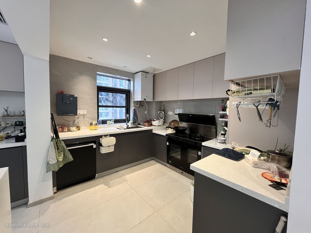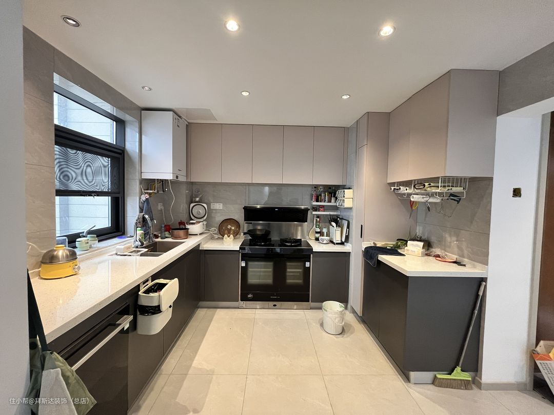 开放式厨房增加了与客厅的互动性,U字型的设计非常适合开放式厨房,大大增加了使用时的操作空间。