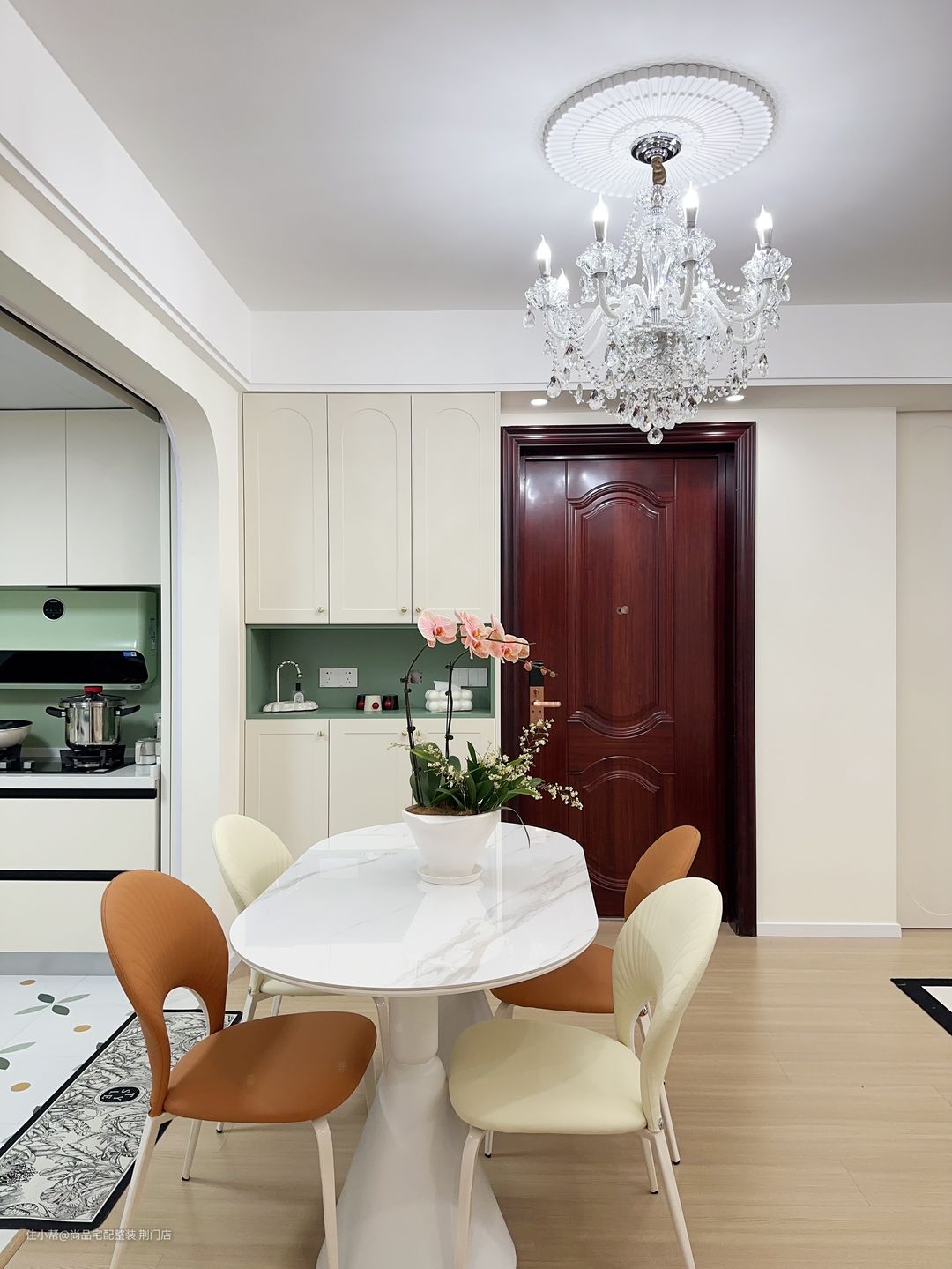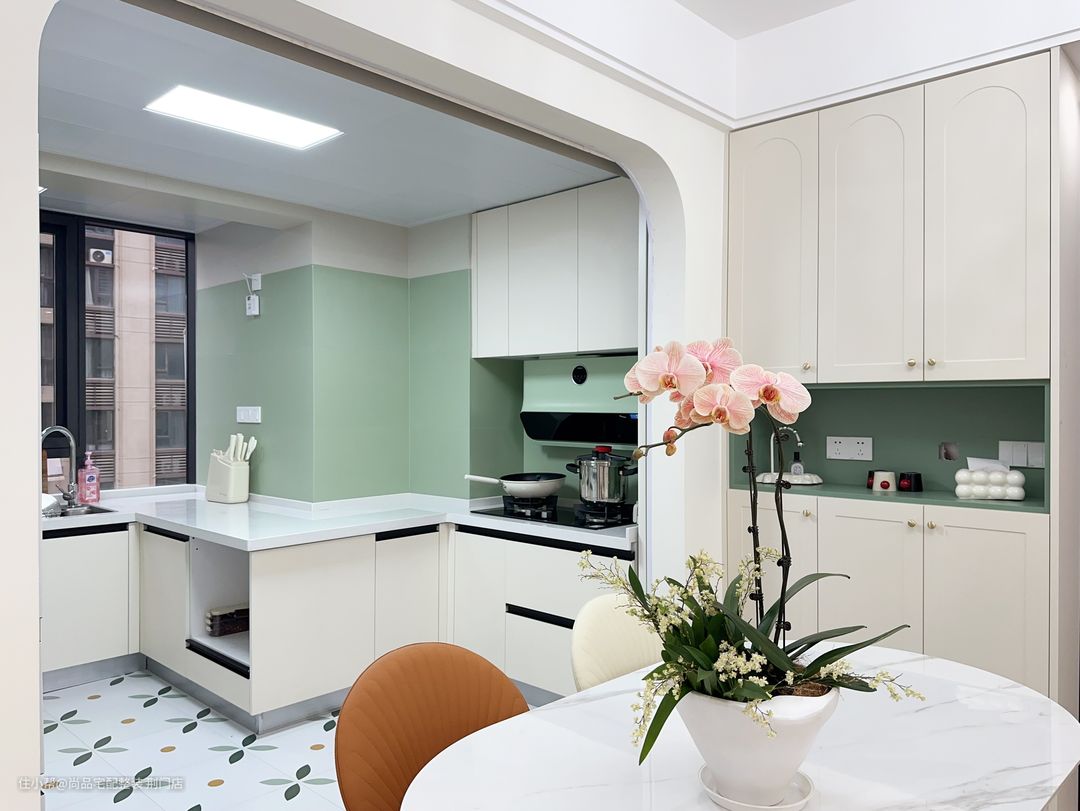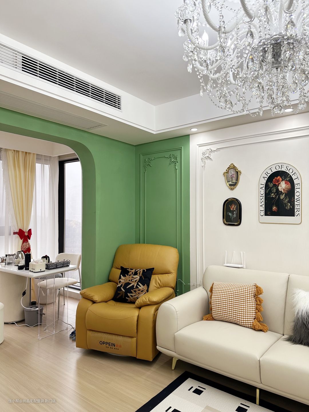 浪漫邂逅开场,如同故事的序章 在法式格调的低吟浅唱里 静诉美好时光! 精美的物件,是品味,也是温暖 更是对家人的长情陪伴。 本套案例采用大面积的奶油色搭配,适当的绿色点缀一下,联袂演绎出空间的唯美感,清新的绿色配上线条,形成法式的温婉浪漫的一个基调,让人一见倾心。