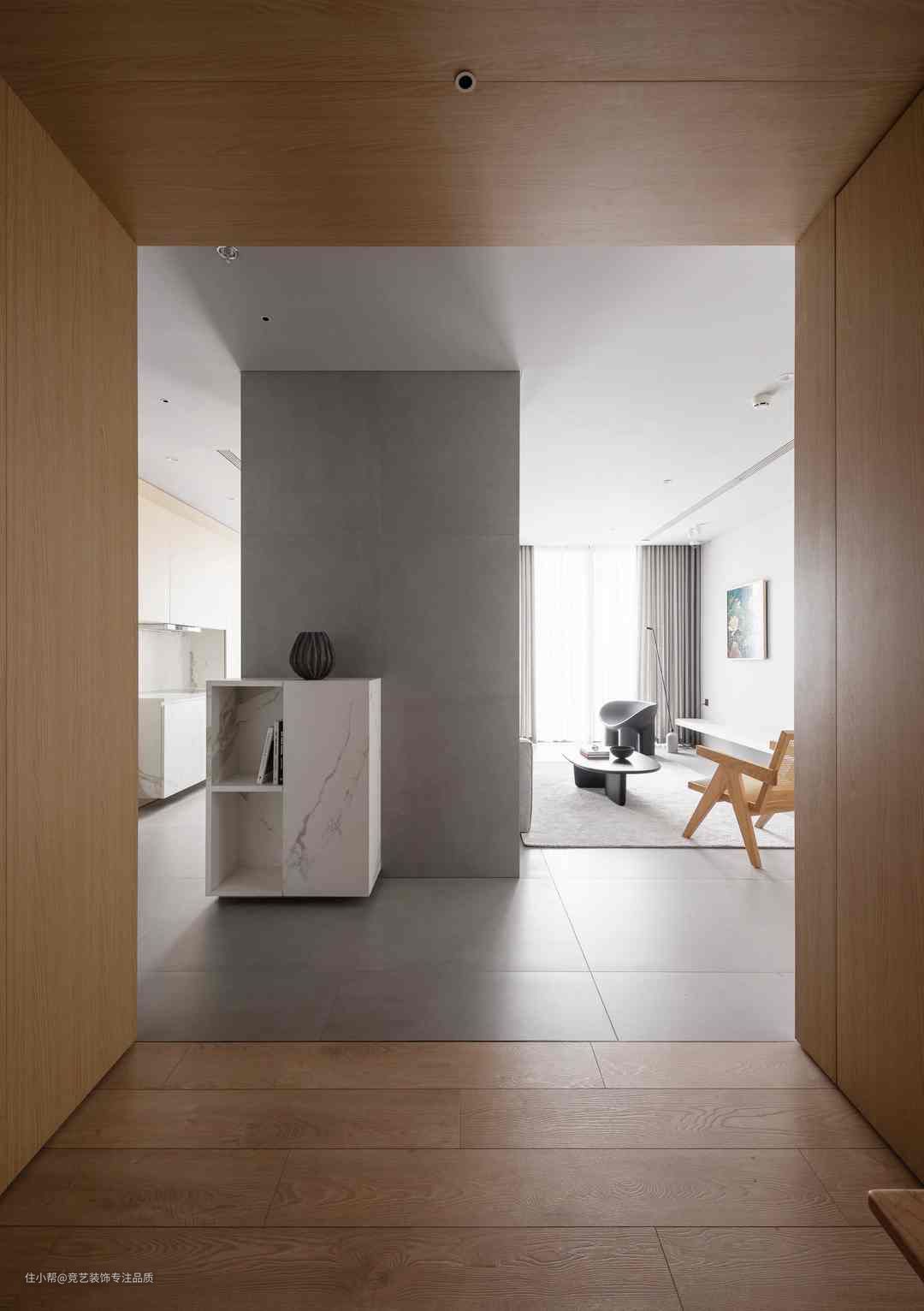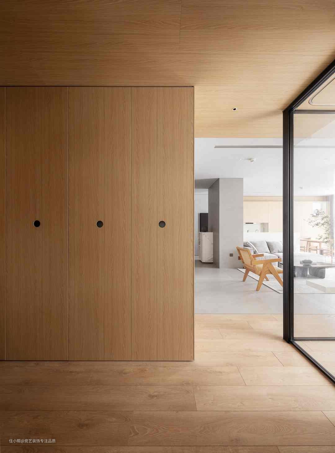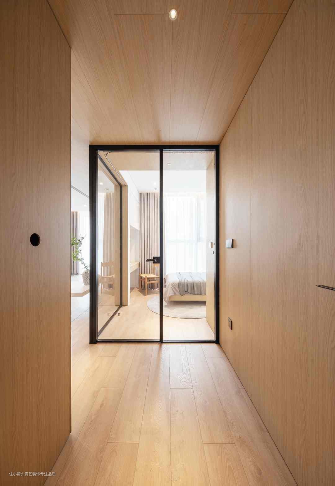 过道不仅是通道的功能,更多空间还可作为展示和收纳的空间。木饰面+暖光+木地板提升精致感,形成视觉呼吸感~质朴的原木材料构造出纯粹的质感空间,不同形态展现使得空间更有线条感和层次感质感细腻纹理丰富,重软装轻硬装感受不同的家居生活搭配上无主灯没有其余吊顶更显层高拉长纵深感