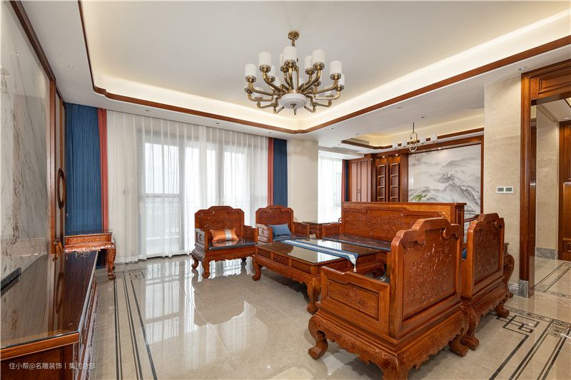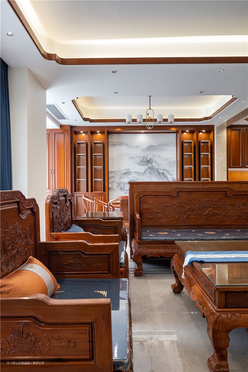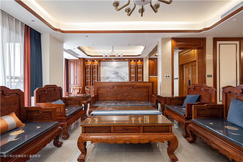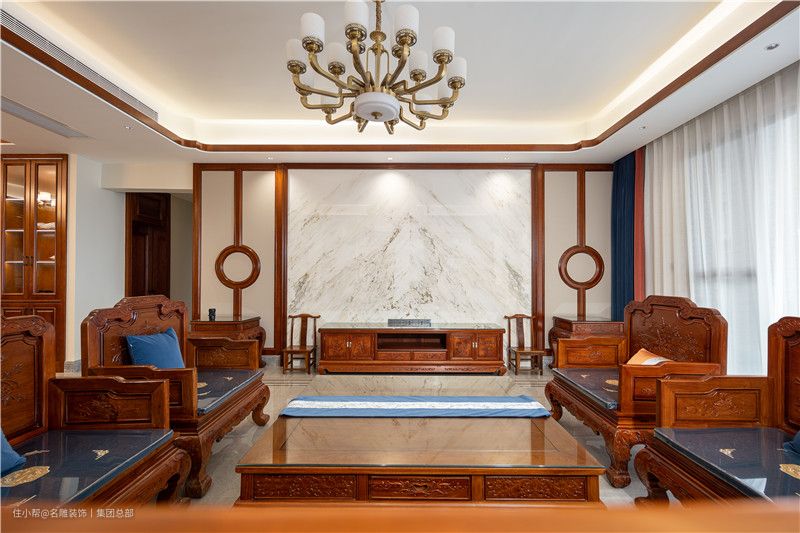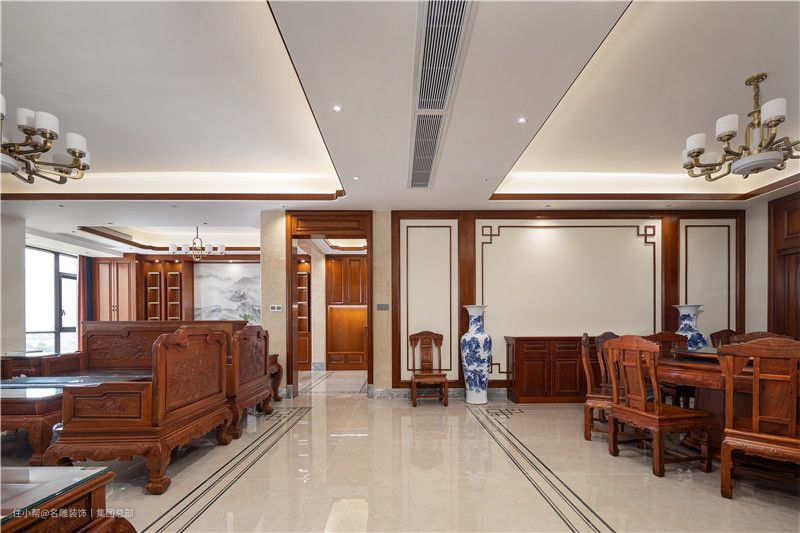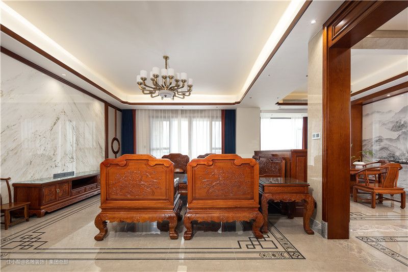 空间层次分明:新中式风格通常采用屏风、博古架、花格等中式元素来分隔空间,使整个空间层次分明,富有立体感。