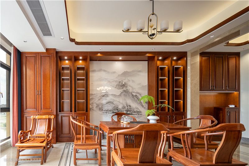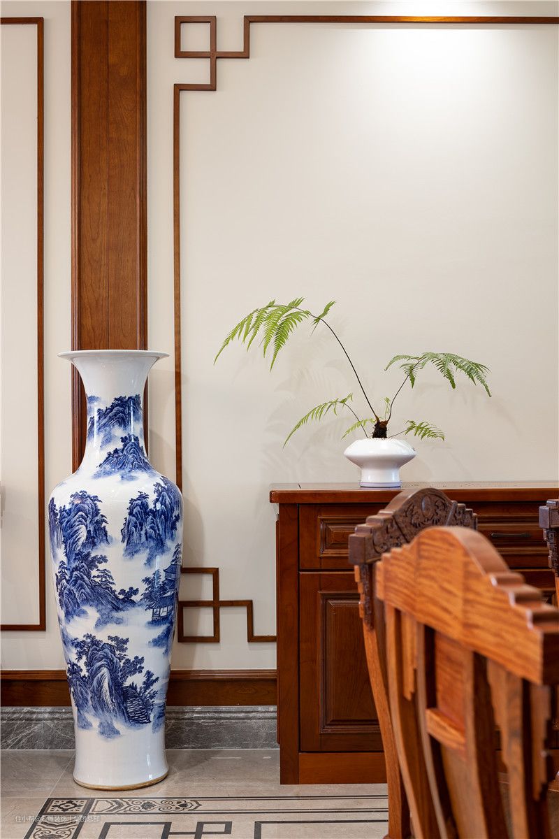 整个房屋的装修风格以新中式为主,将传统中式元素与现代设计手法相结合,营造出一个高雅、舒适的居住环境。这样的装修风格不仅体现了主人的品味和个性,也展现了中国传统文化的魅力。