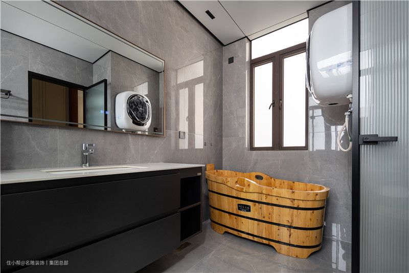 将浴缸单独放置在卫生间的一角,与淋浴区和洗手台分开,这种设计可以让整个卫生间更加宽敞明亮,同时也可以增加浴缸的舒适度。
