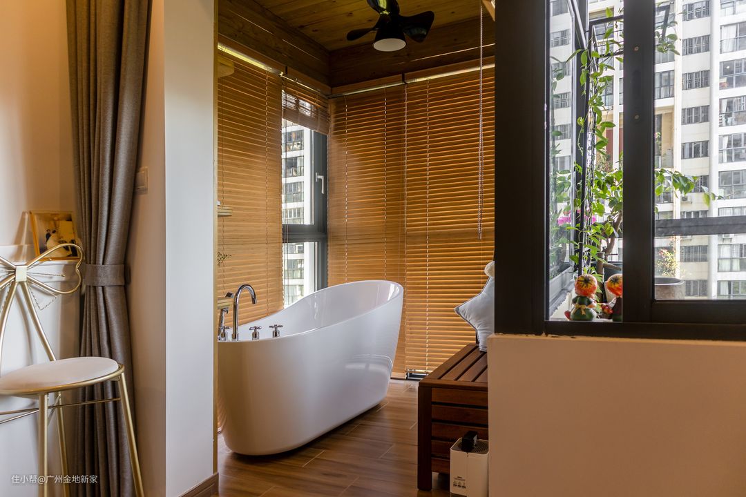 来到屋主最爱的主卧部分了!完工之后落地效果真的很棒,超出了女主人的预期,我们那天去拍摄的时候,一进卧室门就会有哇塞的感觉,特别有意境,尤其是在夜晚的时候,散发着Romantic feel🌹 卧室最大的改造亮点,就是增加了女屋主想要的开放式浴室。 开放式浴室完全打破了传统功能空间和区域的界限,拆除多余壁垒,并将阳台一部分分隔开来,使得卧室“扩大”到能够包含浴室部分功能,阳台的采光也能很好地分享进卧室的空间里☀。 将砌筑台阶将浴缸稍微抬高,规划设计入水管与下水管走向空间,和地面形成高度差,自然地营造空间层次。