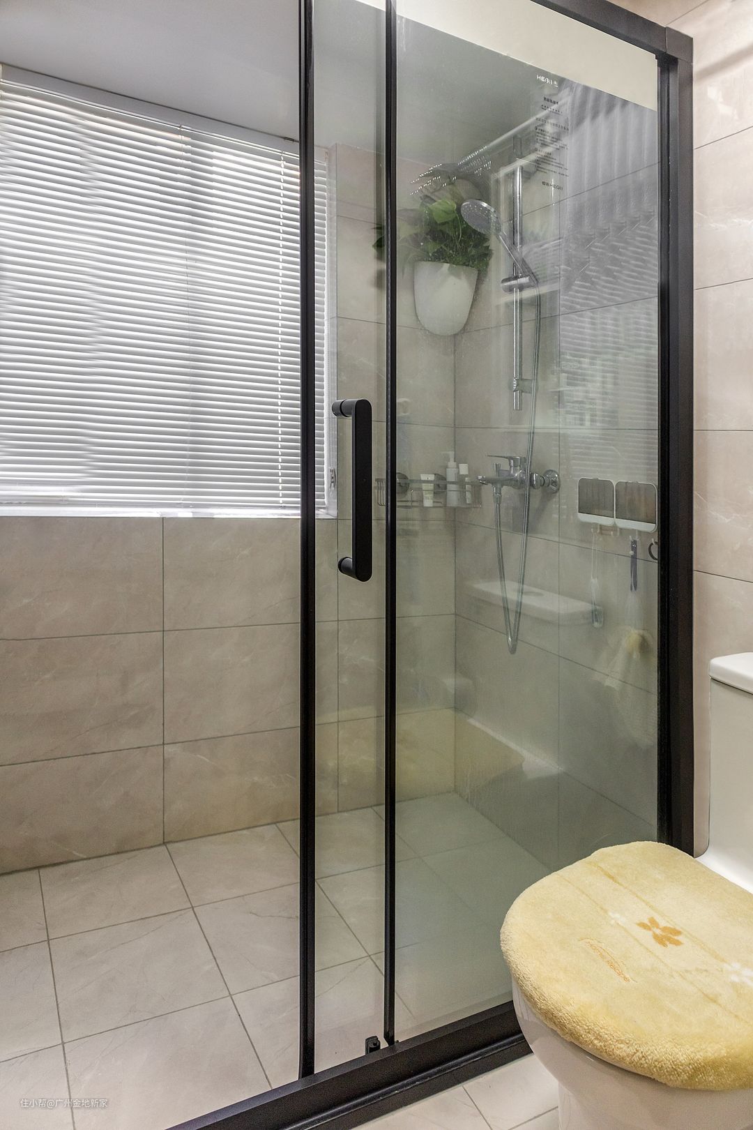 卫生间采用三区分离的形式,洗手台放在了卫生间的门口,卫生间内部做马桶和淋浴区,利用玻璃和挡水条做了隔断,更为轻便的设计非常适合面积较小的卫生间。