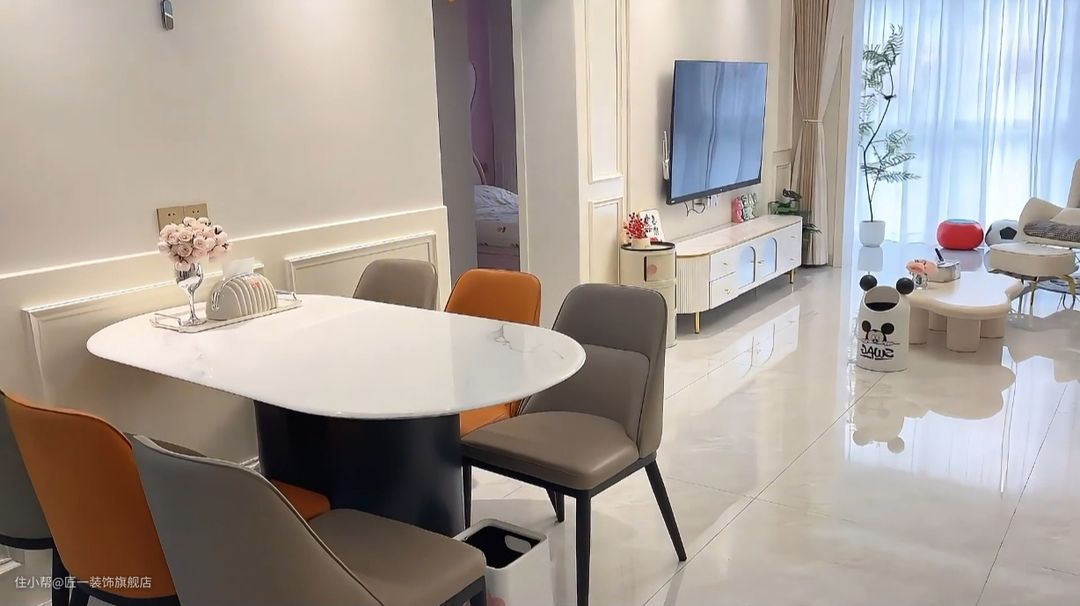 这套简约轻奢风格的装修案例注重简洁、明亮、实用和美观,通过合理的布局和精心的设计,营造出一个舒适、美观、实用的居住环境。