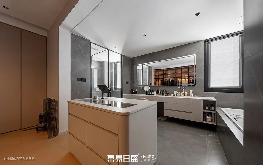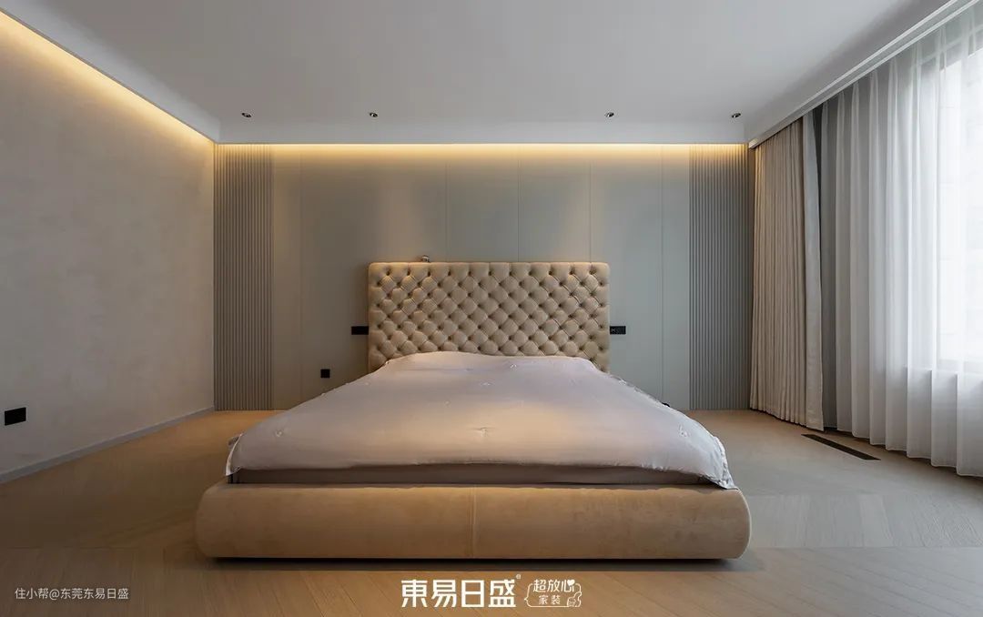 考虑到屋主在家办公的需求,主卧设计融合了书房功能,确保了隐私与安静。书房的设计同样简约而不失格调,双开门设计增强了仪式感。主卧休息区与衣帽间、梳妆间、卫浴区的连接,为屋主提供了多元化的生活体验。