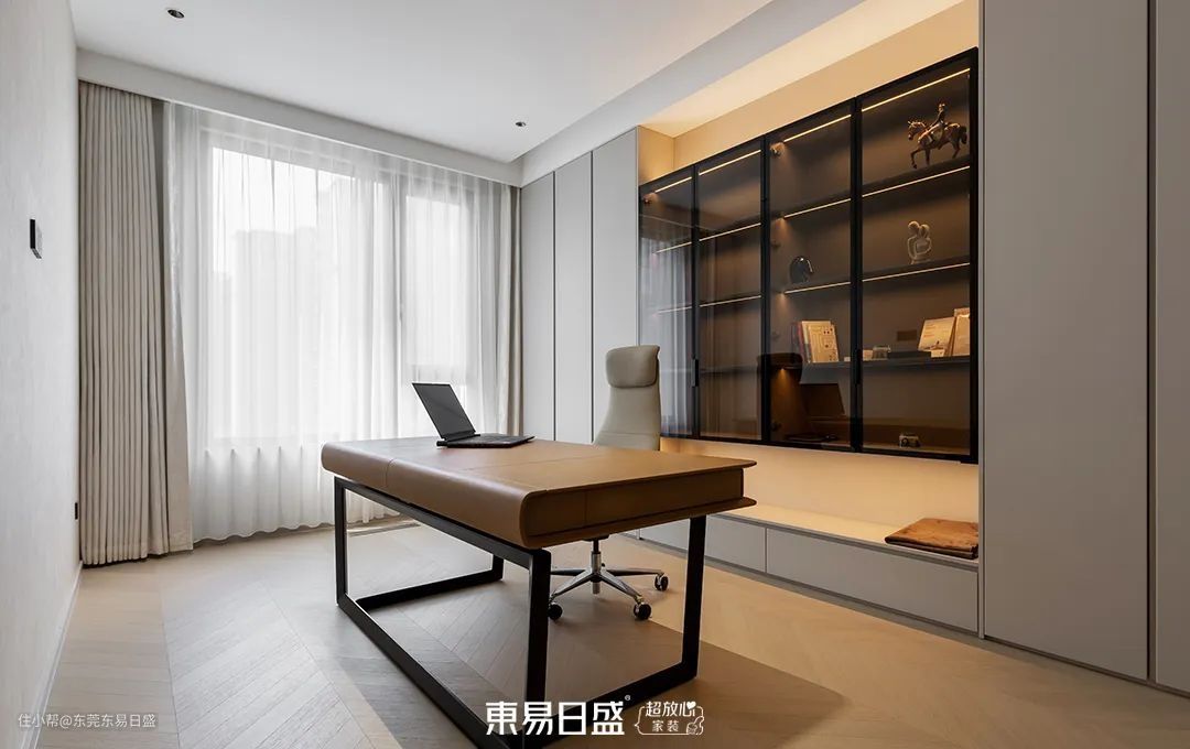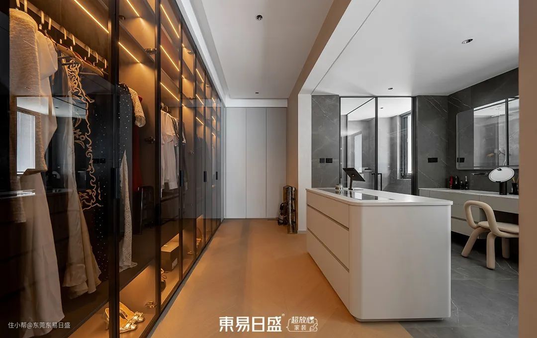 考虑到屋主在家办公的需求,主卧设计融合了书房功能,确保了隐私与安静。书房的设计同样简约而不失格调,双开门设计增强了仪式感。主卧休息区与衣帽间、梳妆间、卫浴区的连接,为屋主提供了多元化的生活体验。