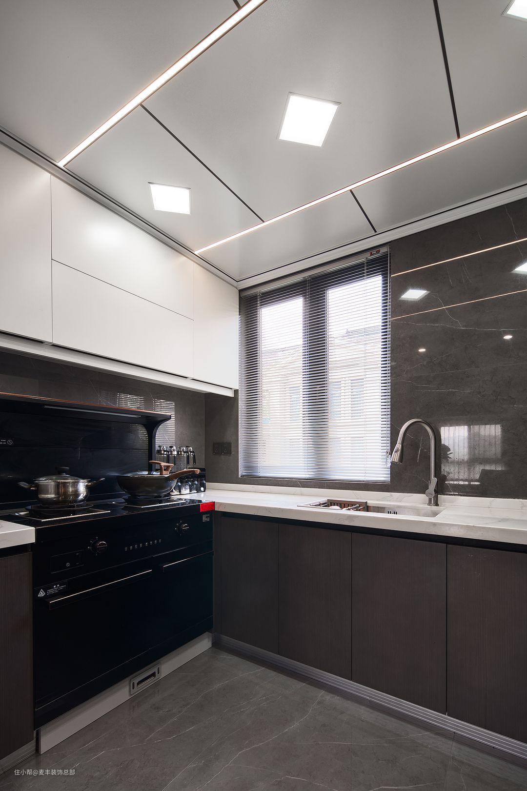 打造半开放式厨房,玻璃隔断通透自然,采光充足,将厨房与其他空间区分开来,动线分明,空间更加宽敞流畅。