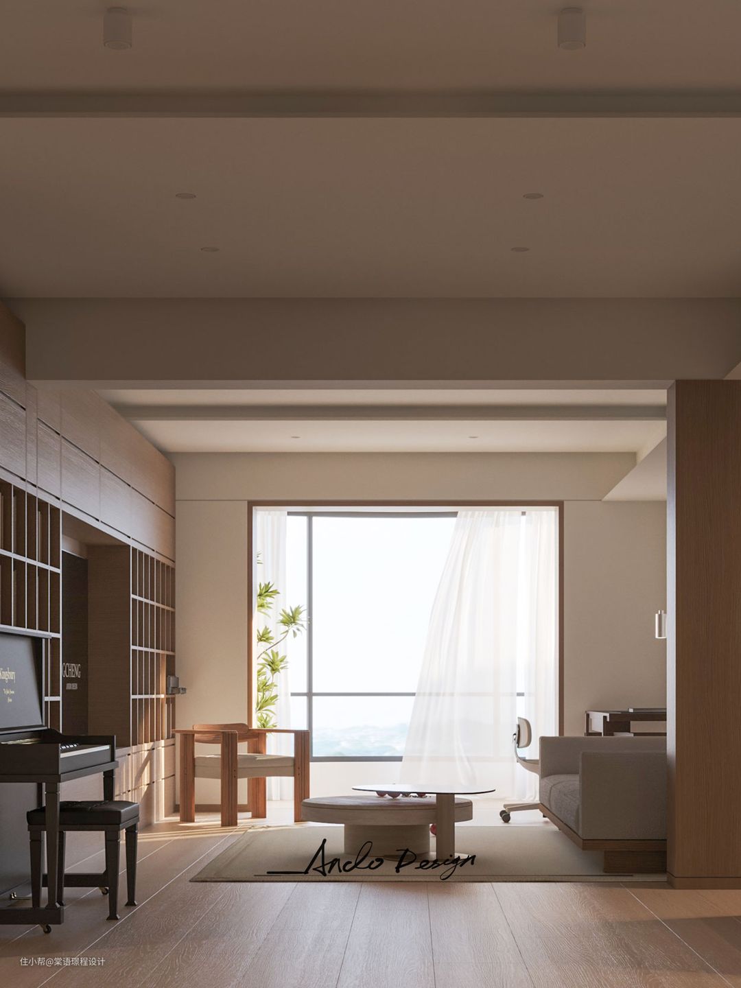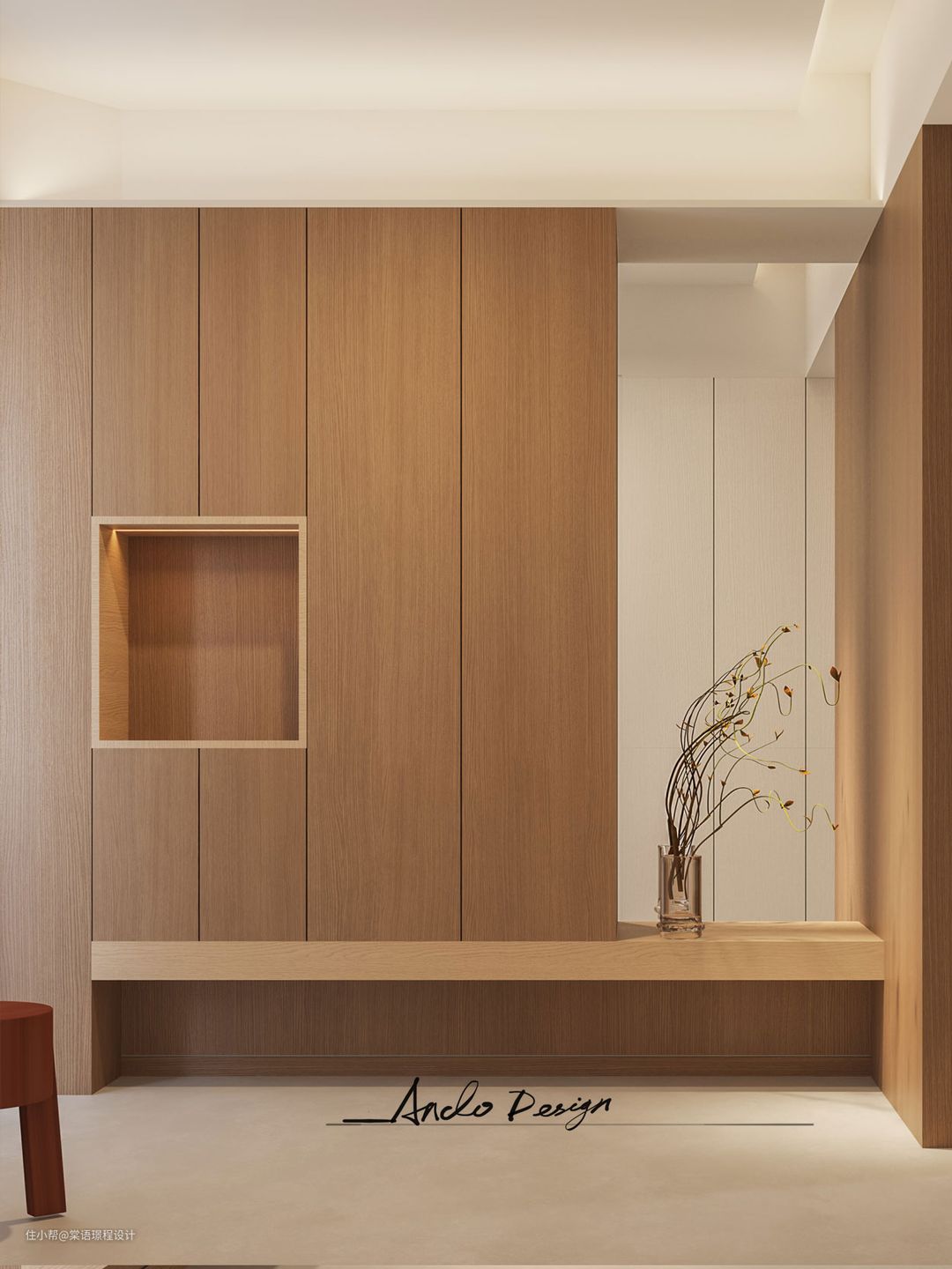 本案例132㎡,户型为四房两厅,业主想要一个衣帽间,设计师把其中一间房合并到卧室,把主卧设计成套间。 卫生间,衣帽间,睡眠空间为一体,在整个色调上都是选用暖浅色调,然后用原木色点缀,实现一个温馨舒适的家