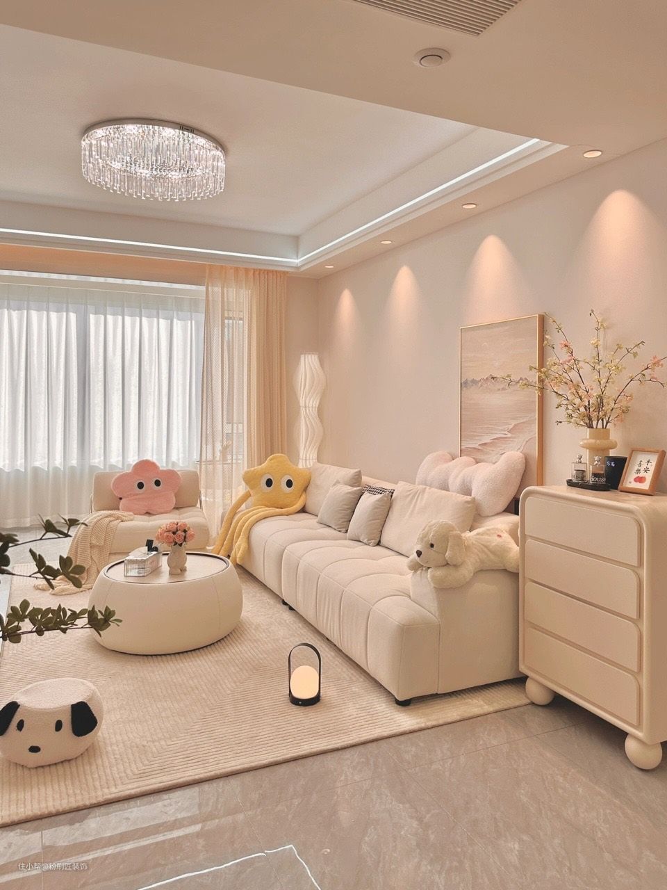 奶油风的茶几 沙发 让整体感觉更加有氛围 温馨浪漫