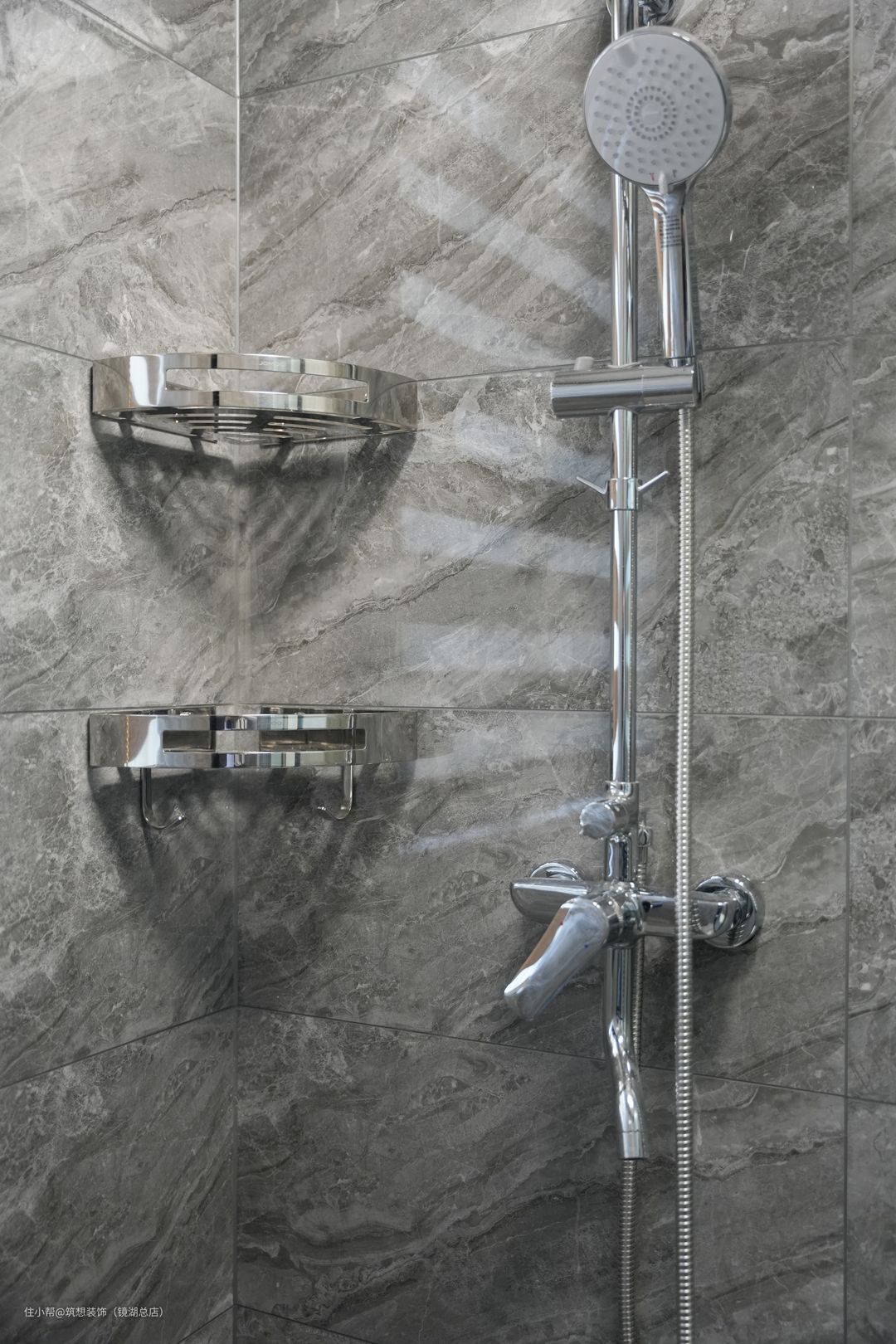 墙砖和地砖都选用了灰色的色调,让整个空间有别于客厅卧室,营造出独特的利落清爽。干湿分离的设计,增加了实用性。