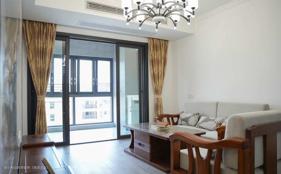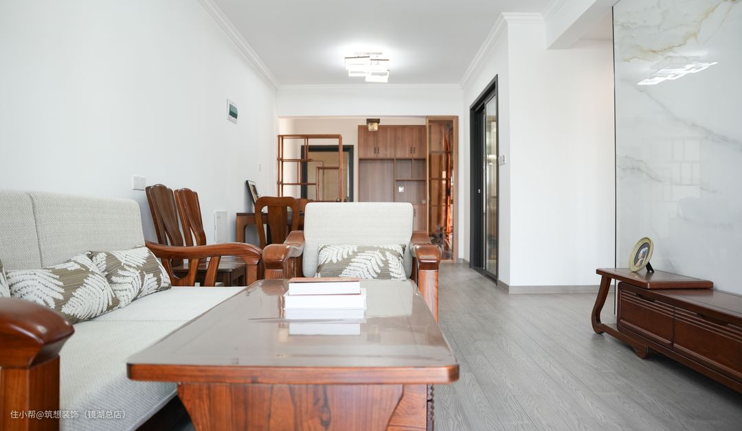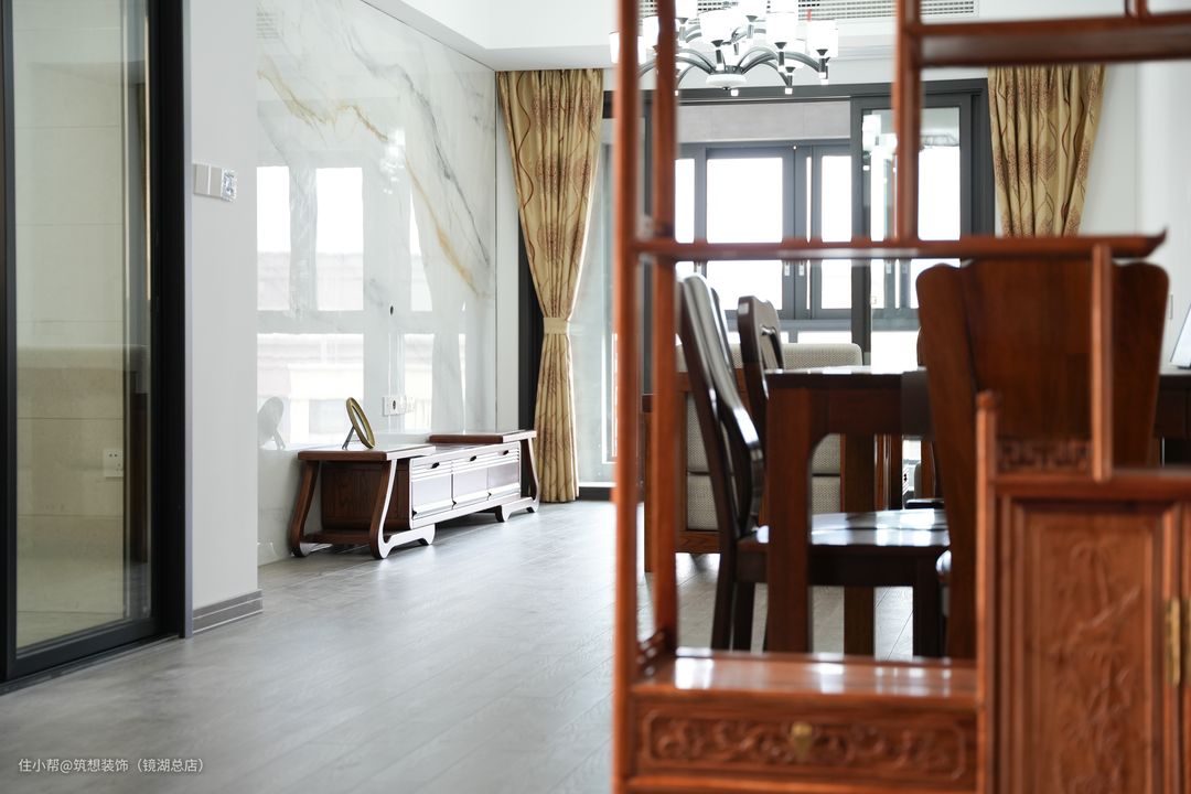本案户主是一对结婚多年的夫妻,对中式的装修风格情有独钟,希望家中有中式元素的同时但又不用显得太过厚重,整体氛围可以轻松一些,同时希望有一定的收纳空间来摆放一些小物件。 设计师根据业主的需求觉得房屋的整体色调还是以浅色为主,一方面不显压抑,另一方面也能很好与中式风家具相互调和。户主说装修完后的效果比前期预想的还要好一些。
