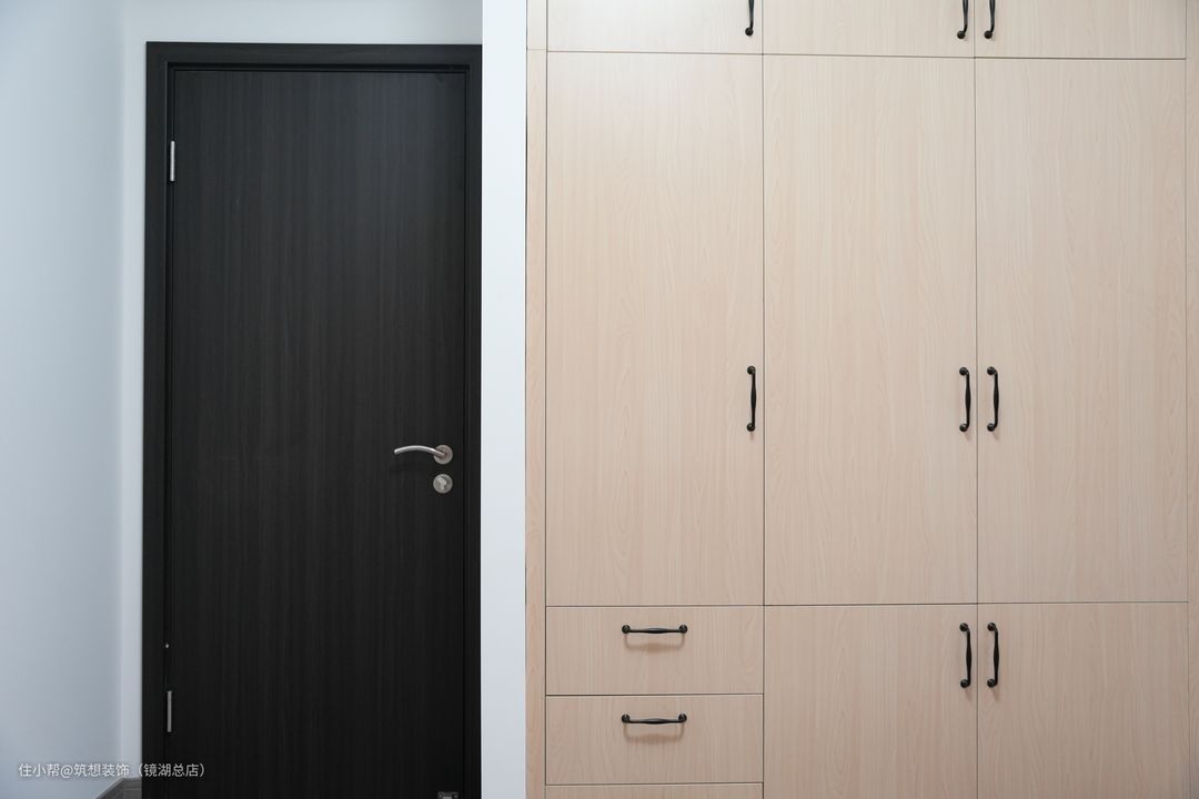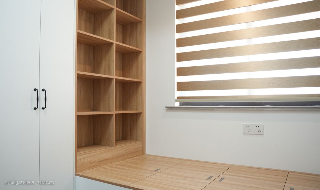 次卧主要还是以收纳为主,平铺的收纳柜在有客人来时,也可以铺上被子当做床来使用,简单又显使用。