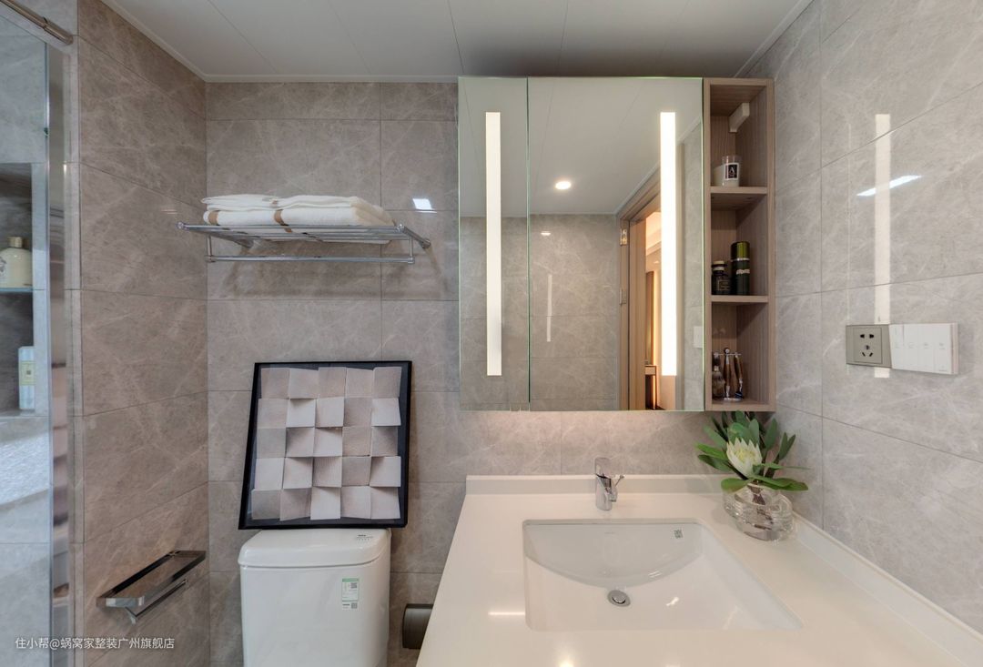次卫的存在不仅为生活提供了极大的便利,同时也为主卧增添了一份独特的韵味。镜柜内嵌,不仅节省了空间,更使整体设计显得和谐统一。这种巧妙的设计不仅优化了空间布局,还让主人在繁忙的生活中享受到一份宁静与舒适。