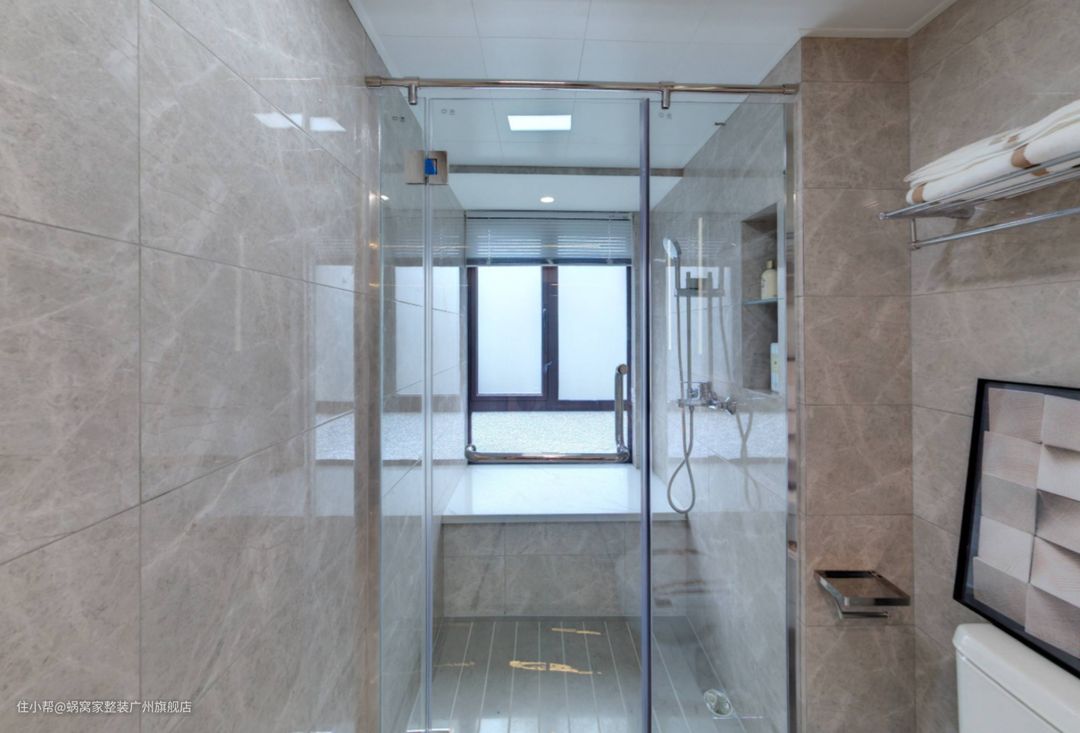 在规划次卧的卫浴设计时,我们特别注重空间的合理利用和干湿分离的原则。由于湿区的位置呈现独特的五边形,这为空间规划带来了一定的挑战,但也提供了更多的创新机会。为了最大化地利用这一不规则形状,我们精心设计了一个与五边形完美契合的淋浴区域,既确保了淋浴的舒适体验,又巧妙地避免了空间的浪费。同时,我们将干区和湿区明确分开,通过防水材质的运用和适当的隔断,保证了卫浴空间的清爽干燥,为居住者提供了一个既实用又美观的卫浴环境。