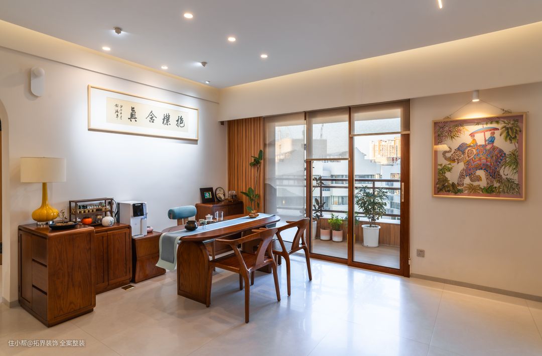在办公室规划出一个待客区域,又以富有东方意境的家具摆设,彰显主人的文化气质,营造舒适惬意的洽谈氛围。
