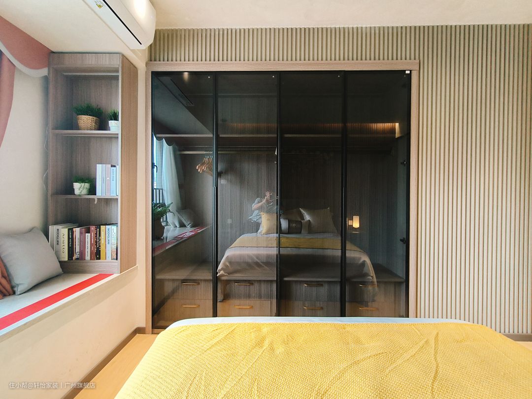床尾嵌入到顶衣柜,占地面积,增加储物空间,平开设计拿取方便,极简超高门设计让每一寸空间都能尽其所用。内嵌暖色灯带,轻松游走于时尚与轻奢,内部格局按需设计迎合每个收纳习惯,玻璃柜门拒绝翻箱倒柜,挑选衣物也能优雅进行。飘窗处设计开放式书架,给书籍、摆件一个专属空间,眼之所及皆是钟爱之物,邂逅书香、意趣生活,靠墙的一隅恰到好处。,开放式存储满足便捷存取,撑起居室格调气质,颜值与实用功能并存。 新现代风格铁艺壁挂,卸下一身的城市浮华,邀您悦赏新家,让艺术走进每一家,少一分复杂,简约而不简单。装饰前,感觉缺点什么墙壁空荡荡的,装饰后 ,装饰艺术让空间更加饱满。暖黄色的床单搭配中式玉佩吊坠抱枕,新中式传承文化采用中国传统元素,加上现代机器制作工艺,将纹样赋予新的活力和生命。床头柜放置压铸玻璃灯罩,透光率高能透出柔和光线。床的两侧放置宽大置物岩板台面,置物便捷拿取方便。 主卧的设计简约线条,勾勒出优美线条,体现平面的尺度、层次感与设计感。