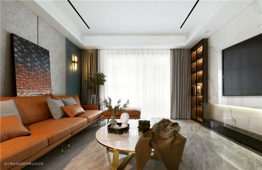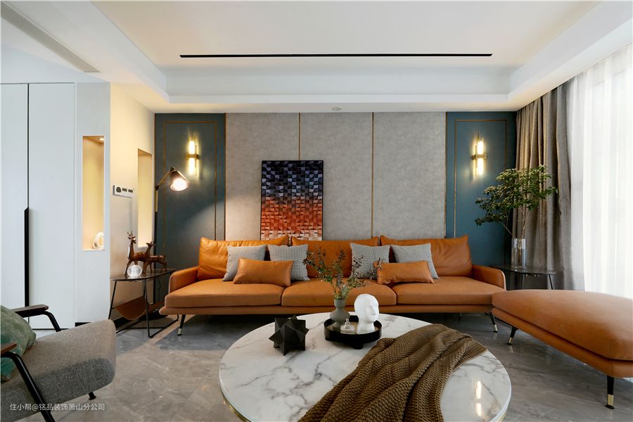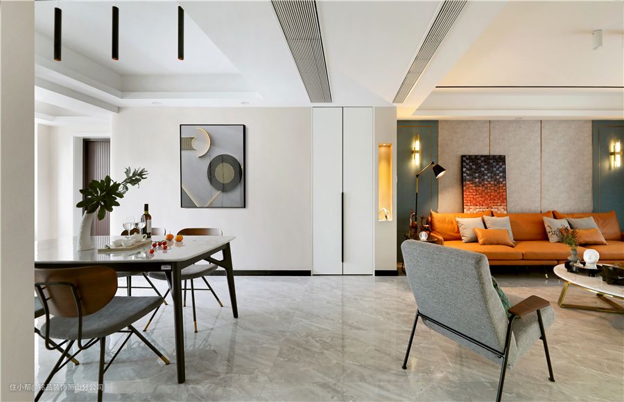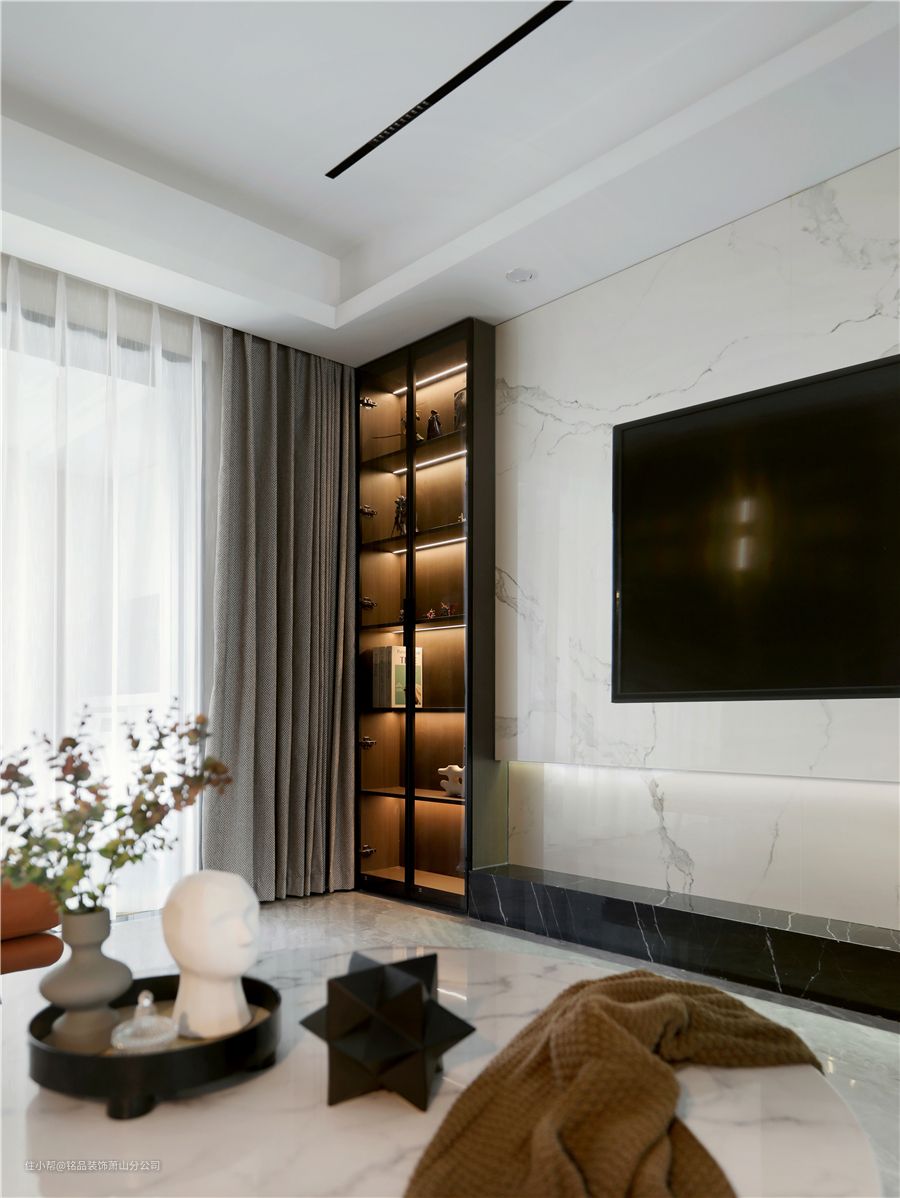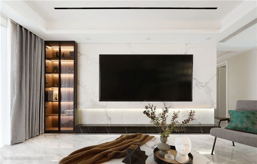 客厅无主灯设计,所以在很多角落上也会加几道壁灯,确保室内无照明死角。沙发两侧已有一道边几,摆放了不同的装饰物:艺术摆件+绿植,显示出了空间的丰富趣味性。而且适当的绿植也有助于家庭空气质量,带给家人更舒心的居住环境。#绿植 #无主灯 #壁灯 #细线条 #装饰画