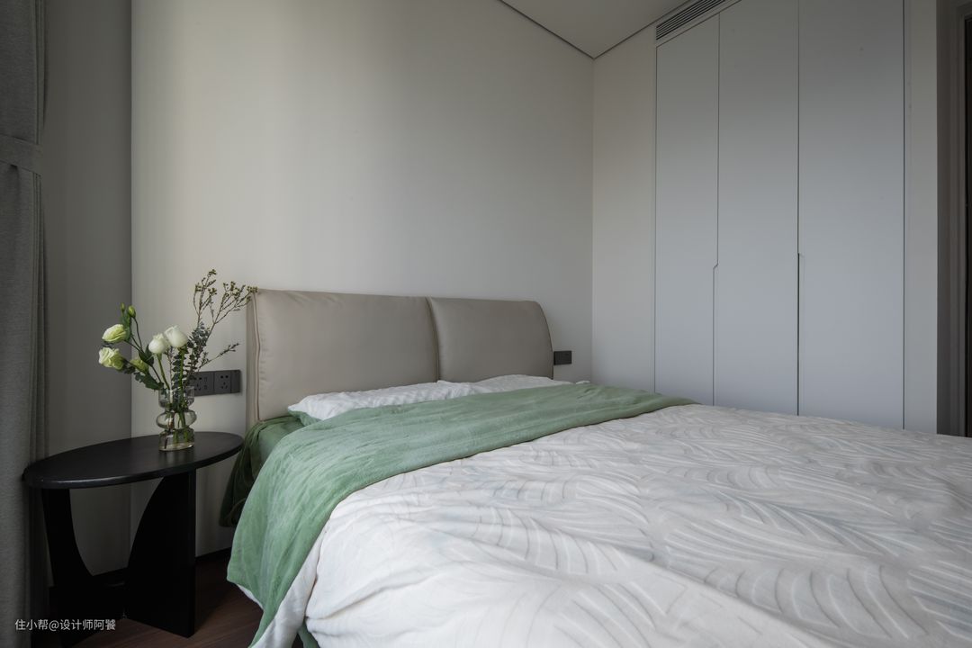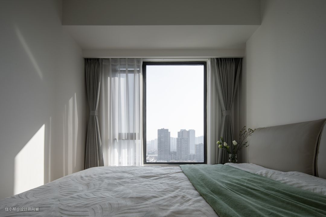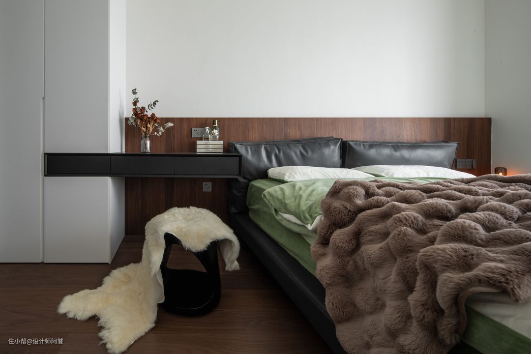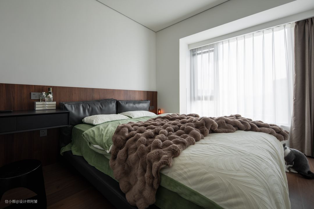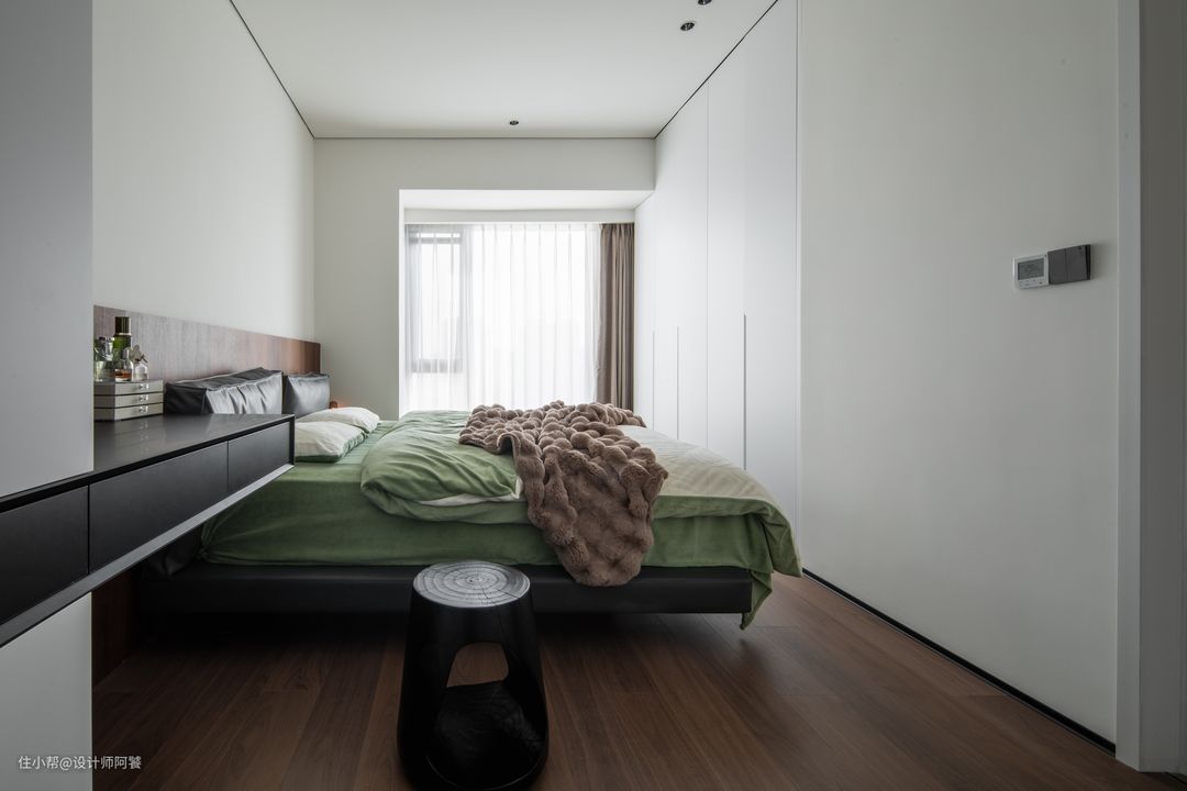 我认为生活的空间,应当是有温度的空间布局、动线、搭配、 色彩都是为了传达空间的温度,让人与之形成连接互动,享受生活的质感。 极简配色・木纹・细腻 黑白调的软装・木纹点缀,有种高级的秩序感 柔和的灯槽灯光搭配+气氛台灯,营造了一个高格调的睡眠环境。 光线透过窗户洒在木地板上,恰到好处的明暗交织,让人不由自主地沉浸于阅读的世界,静静地享受独处的美好。 主卧室也是我最喜欢待的一个地方,极简放松~