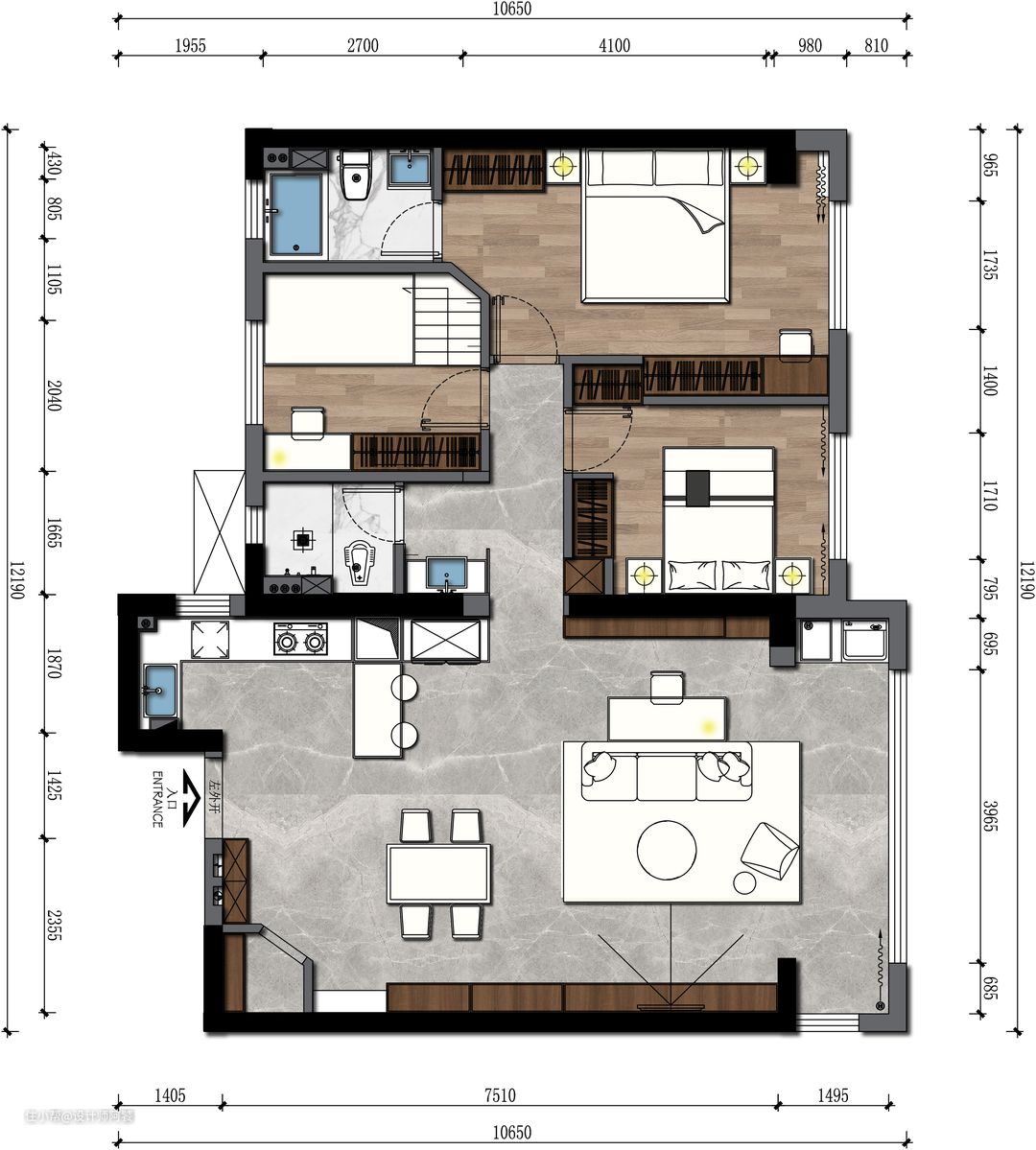 房子原本是一个4室2厅3卫的毛坯房,面积约128平米,容纳两个人的生活,是宽裕的。重重隔断的墙体在我觉得是没有必要、也浪费了大横厅的优势,于是拆掉了所有能拆的墙,对空间做新的布局。 我将大小不一的方块把空间分成若干块面,再通过打开、移位、切洞、对视等手法,将不同的方块联系起来,使得人在其中活动,感到顺手又舒心。 .......... 1.进门玄关鞋柜+储物间(利用转角区间) 2.大横厅结构保留,增加开放式书房 3.飘窗拆除,尽可能的扩大空间利用率 4.利用”Z ”空间手法,将主卧与次卧衣柜分隔开,增加卫生间储物柜等等 ..........