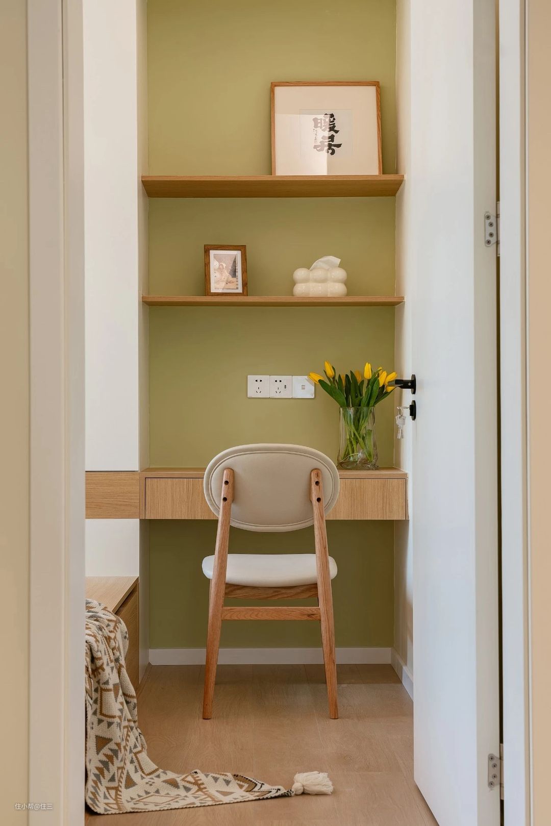 另一间次卧设计了小书桌以及榻榻米,同时承载了工作、学习以及休息的功能。
