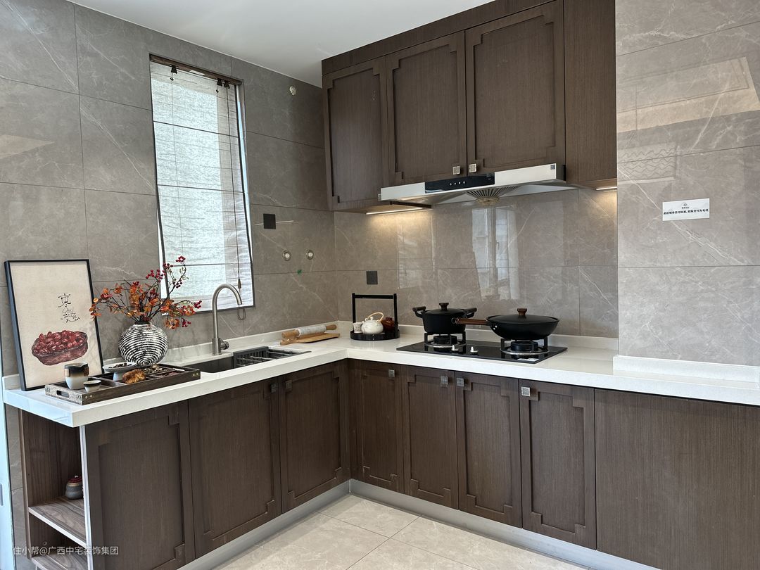 厨房设计以自然与功能为核心,木质元素的广泛运用,散发出清新自然的芳香。L型布局巧妙利用空间,使厨房功能区域划分清晰,提高了使用效率。烹饪区与洗菜区各自独立,互不干扰,让烹饪过程更加轻松流畅,享受烹饪的乐趣。